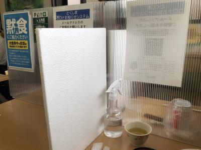 ツアーの自由昼食と、トイレと、お土産物買いのために寄りました。33名が一度に食するには狭く、入れ替わり制でした。私はきつねうどんをさっさと。普通のお味。テーブルは一人ずつパーテーションで仕切られていました。炭酸系の飲料などの種類が多かったです。