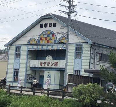 うだつの町並みをぶらぶら散策しました。昭和っぽい雰囲気の、水色の芝居小屋で、地元の憩いの場でしたが、1995年に閉館となりました。西田敏行さん主演映画「虹をつかむ男」でここが使われて有名になりました。