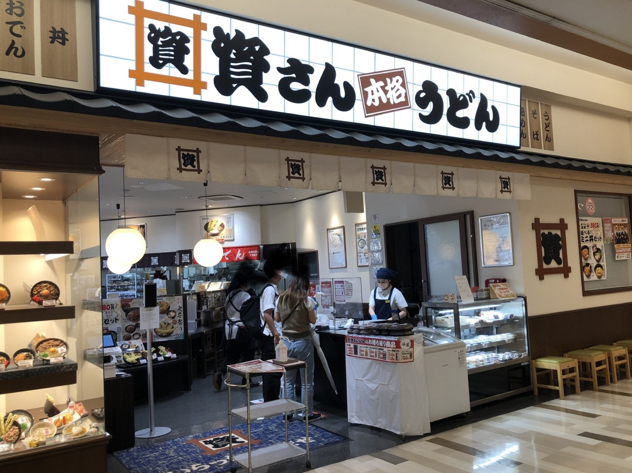 JRスペースワールド駅下車して徒歩5分、イオンモール八幡東店内にあります。資さんうどんは北九州のソウルフード。若ければ、肉ごぼてんうどんをペロリですが、シニアには、ちょっと重くて。もっと軽いものを体が欲します。美味しいです。
