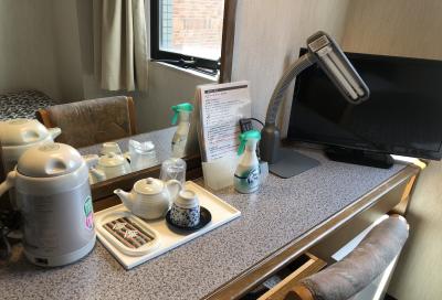 じゃらんクーポン1000円、貯めたポイント2000円引きで2泊で4200円でした。3年前にできた新しいホテルです。博多駅と天神の中間、柳橋でバス下車し、徒歩3分で、隣はコンビニ、部屋には電子レンジがあり便利です。11時まではフロントは無人。それまでにインキーしたらどうしよう?室内に電話はありません。チェックインは15時。キャリーは預かってもらえますが、「冷蔵庫はありません」と。保冷剤4個入れた保冷袋の中身、腐らないかしら?時間に戻ってきて「できれば静かな部屋希望、電気スタンドを貸してください」というと、キャリー、保冷袋、説明書き、カードキー、電気スタンドを手渡してくれました。部屋は2階、隣のビルの壁が目の前で、暗く、日が当たらず、昼か夜か分からない穴倉のような部屋で2日間過ごしました。寝るだけの人なら好いでしょうが、私は再訪しません。