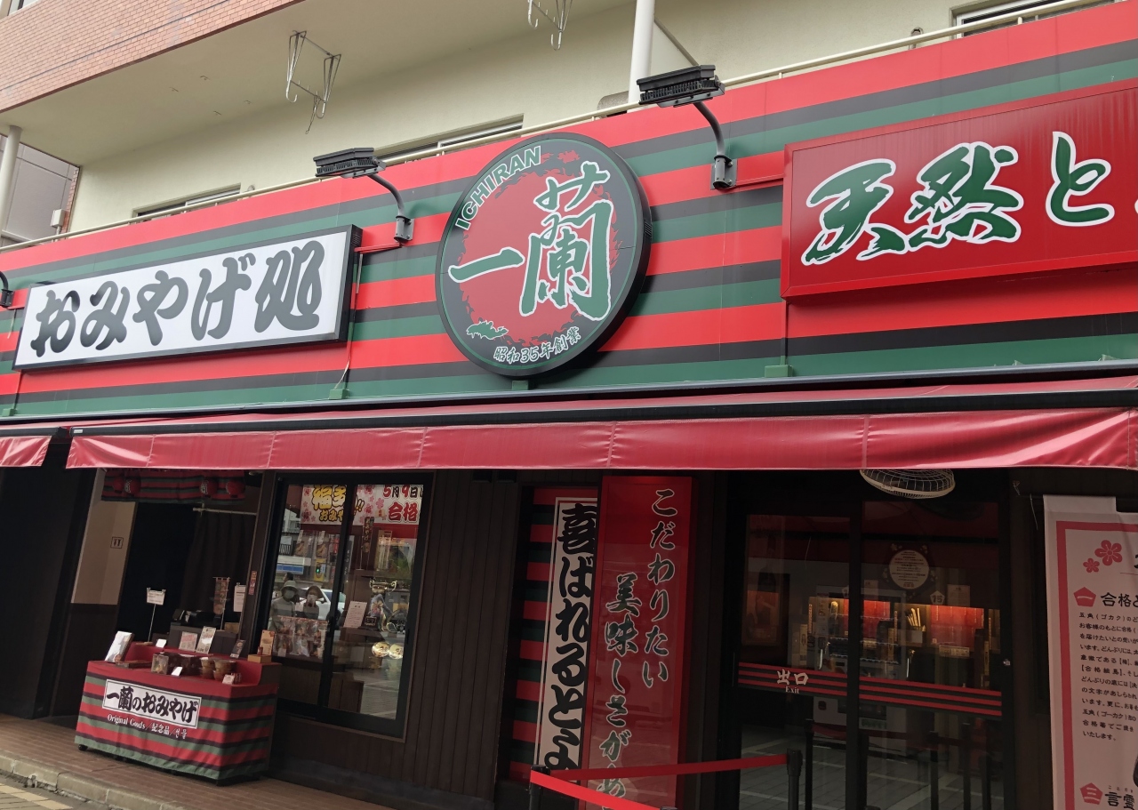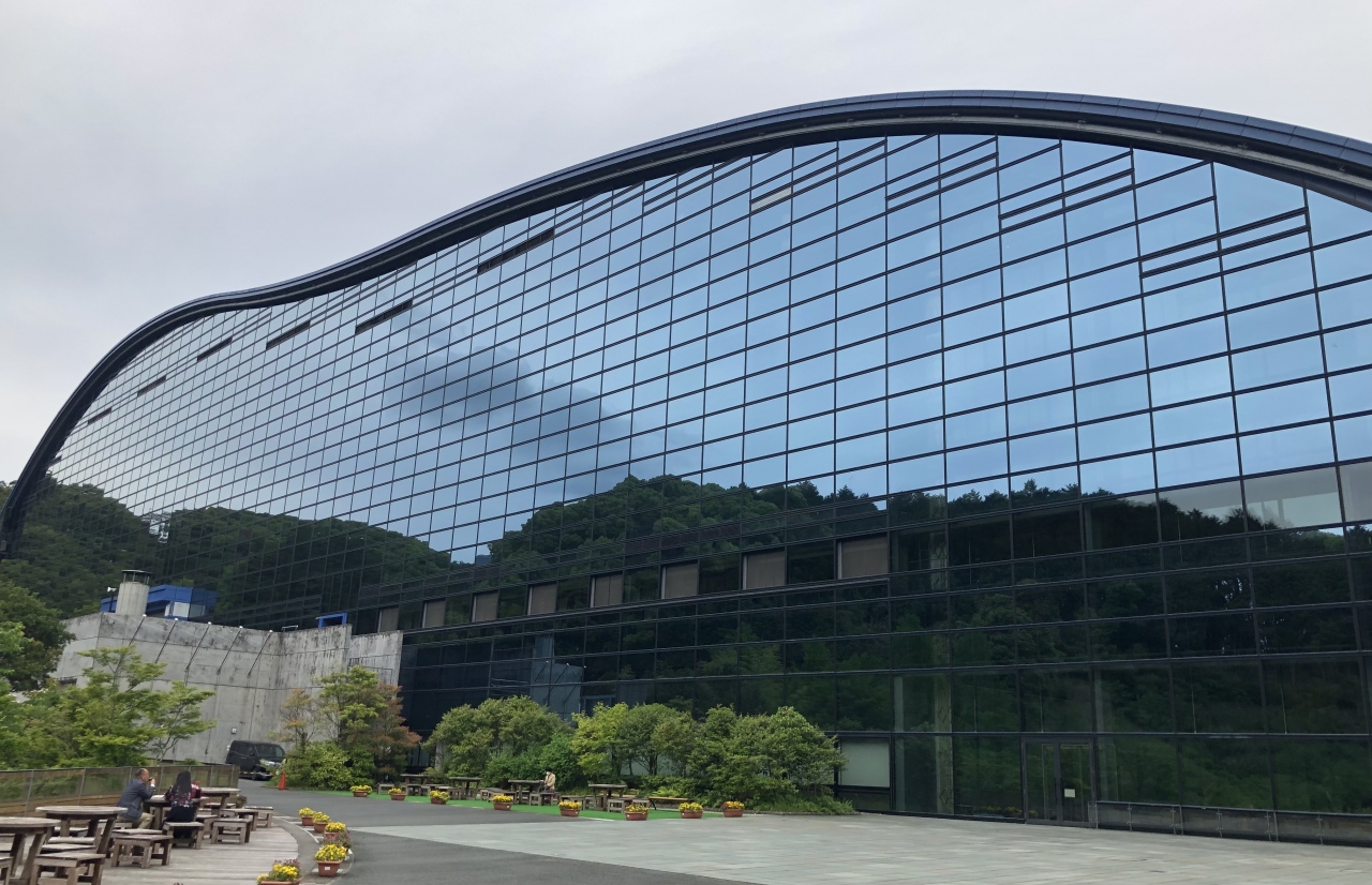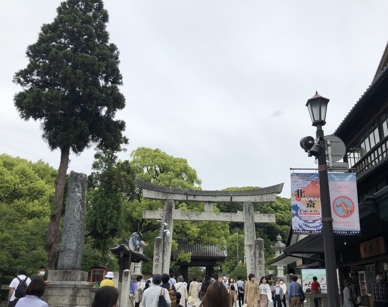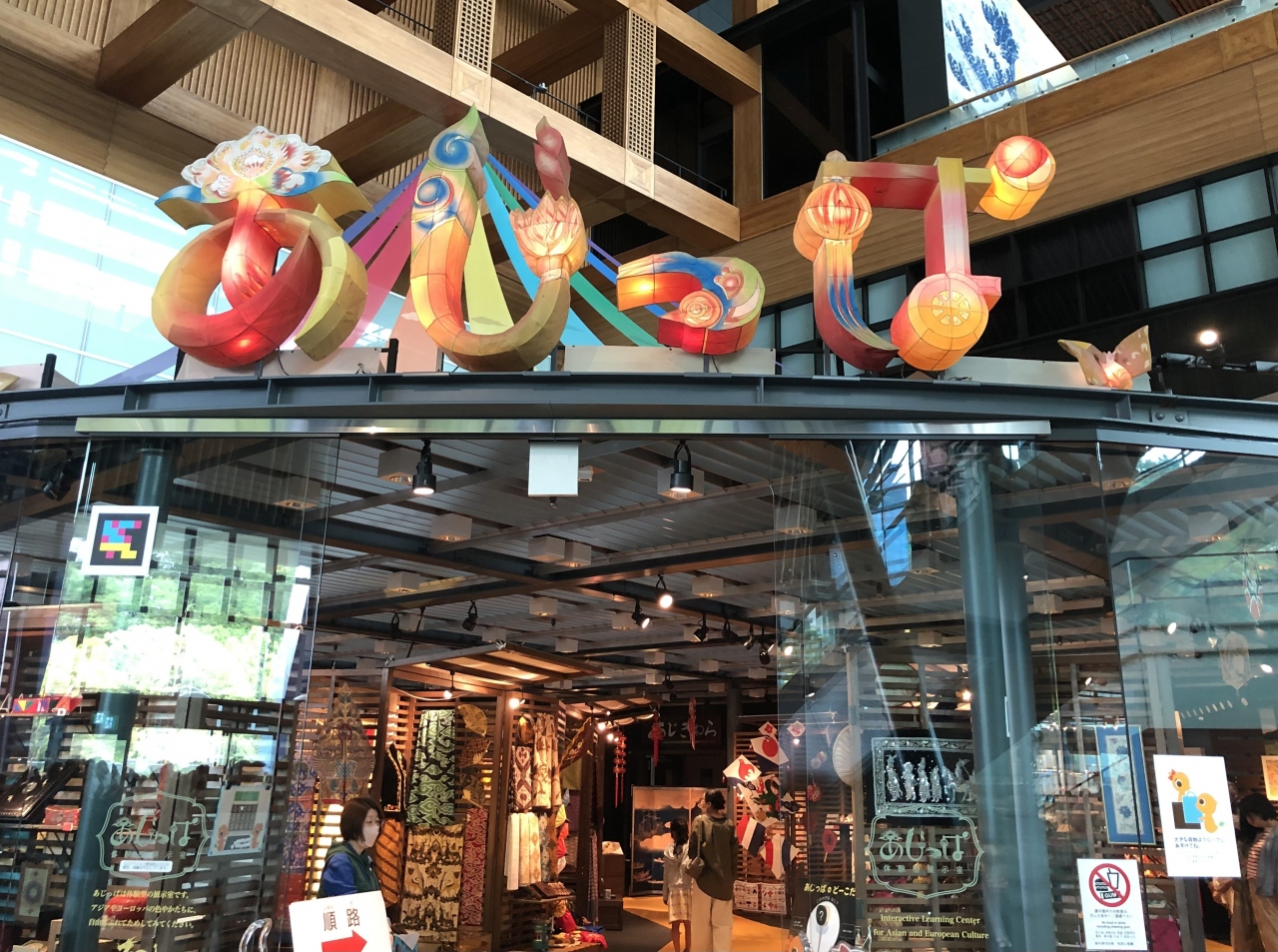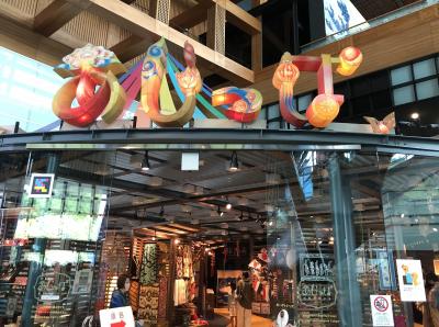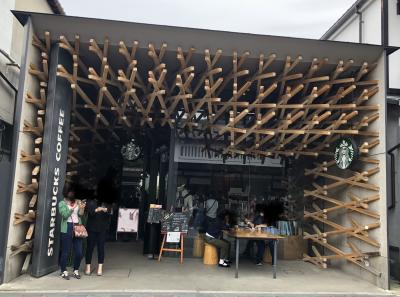 太宰府天満宮の参道にあるお店です。西鉄電車太宰府駅下車3分ほどの左手です。隈研吾氏がデザインしたそうで、木が突き出たような感じです。九州国立博物館の天井に、イメージとしては共通していると思います。多くの観光客が写真を撮っています。