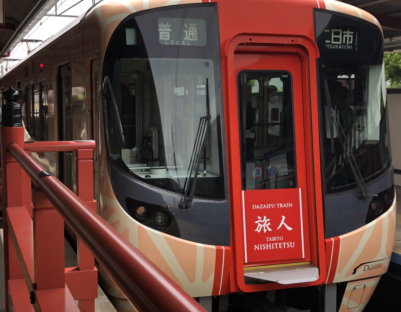 博多駅バスターミナルから太宰府までの直行のバスです。610円。ラッピングバスで、カラフルな色で描かれているものもあります。40分ほどで到着します。普段私は博多駅から天神まで150円バスで行き、西鉄電車に乗り換えて410円で太宰府まで行きます。合計560円。1日18便ほど。値段もさほど変わらないので、荷物が多い時など、バス一本で行った方が、楽かもしれません。