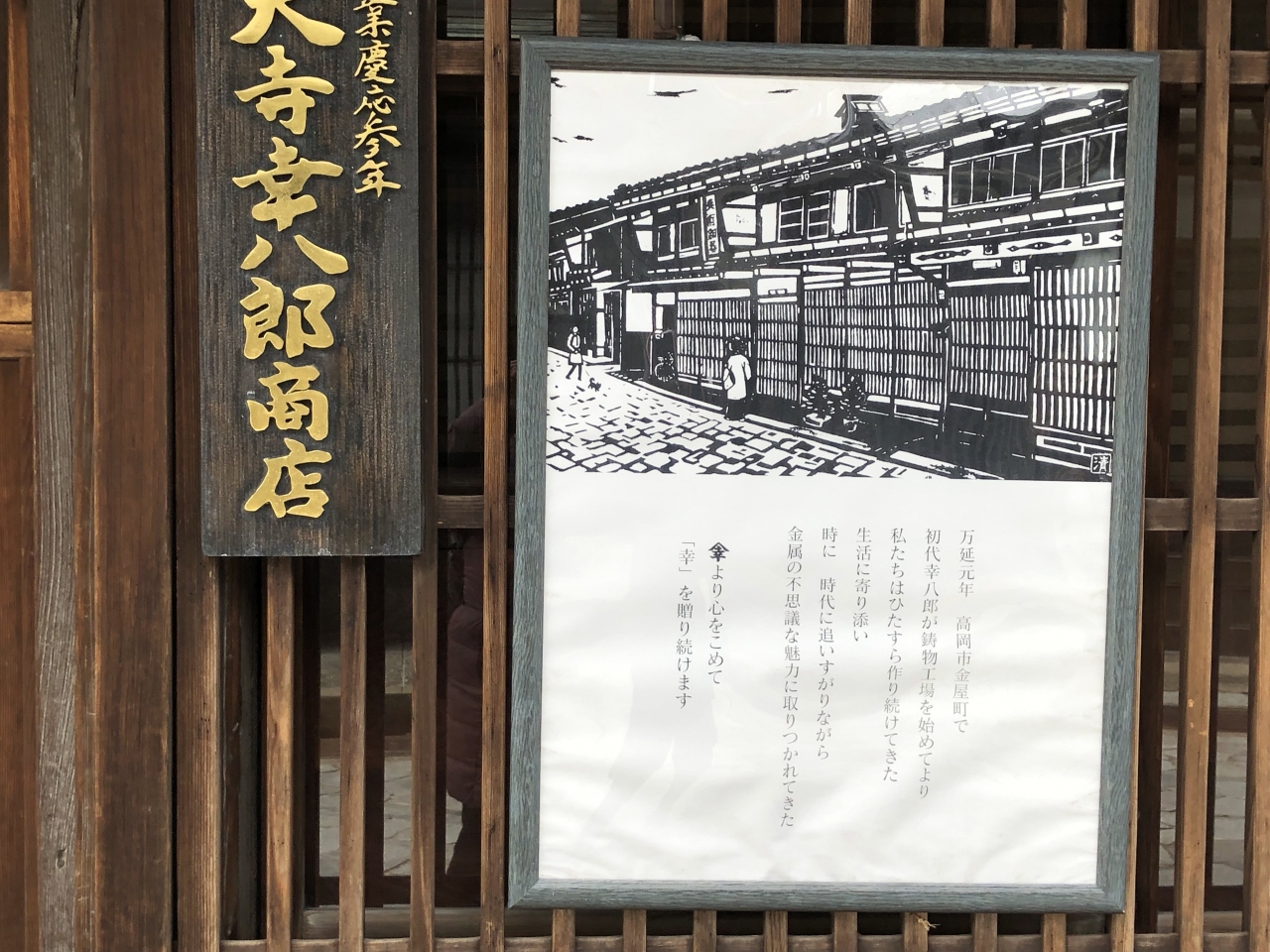 ツアーで訪問しました。川のそばの駐車場は無料。添乗員と歩いて向かいました。400年続くものづくりの街高岡。千本格子の家々が並んでいます。鋳物でできた像も、あちこちにたたずんでいます。それを見て歩くのも楽しいです。
