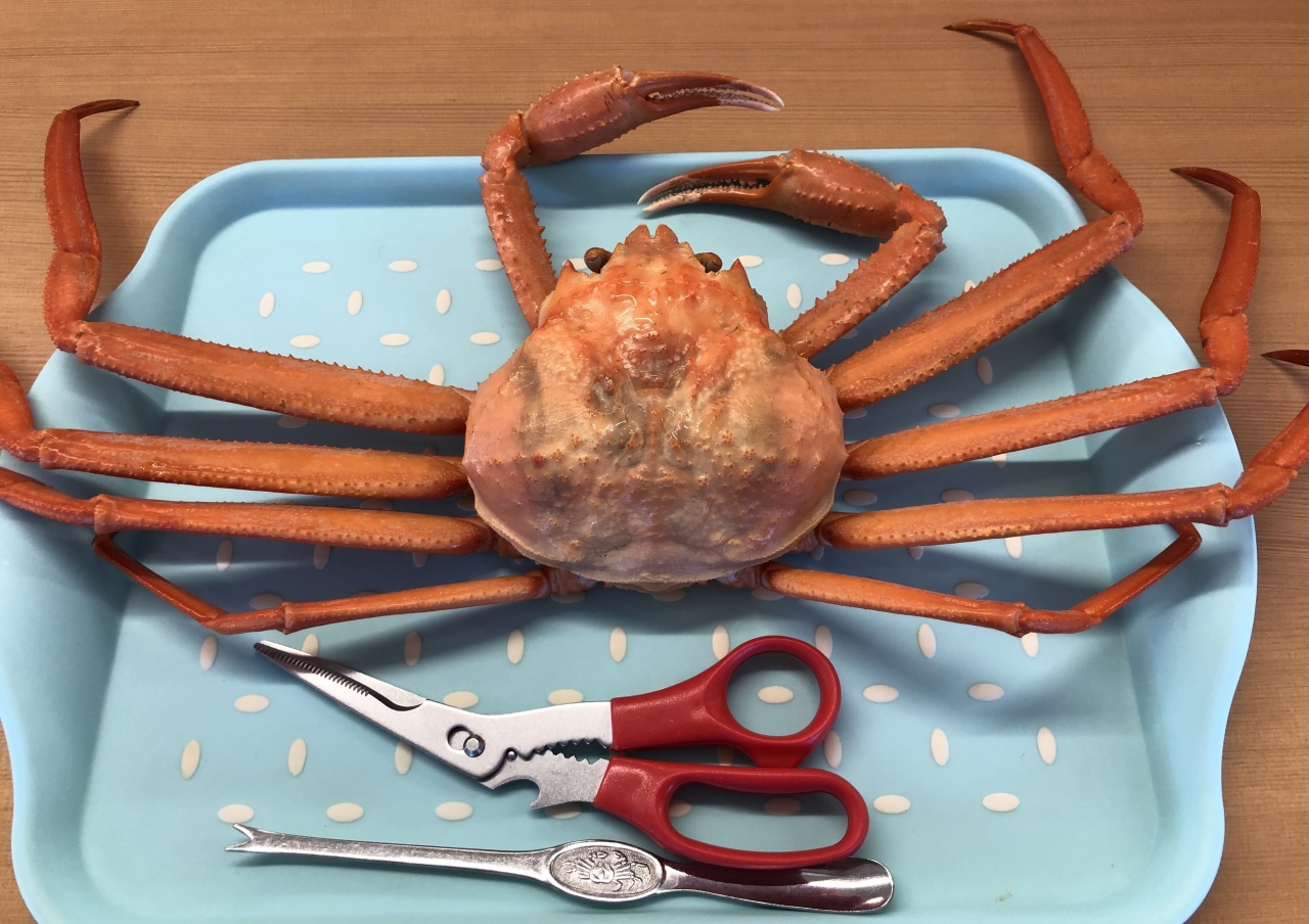 ツアーで訪問しました。高志の紅ガニ(こしのあかがに)1杯を、おやつに頂きました。どんと一杯が、お盆に乗せられており、はさみと蟹フォークと、お茶とお手拭きがセットされていました。大変甘く美味しかったです。