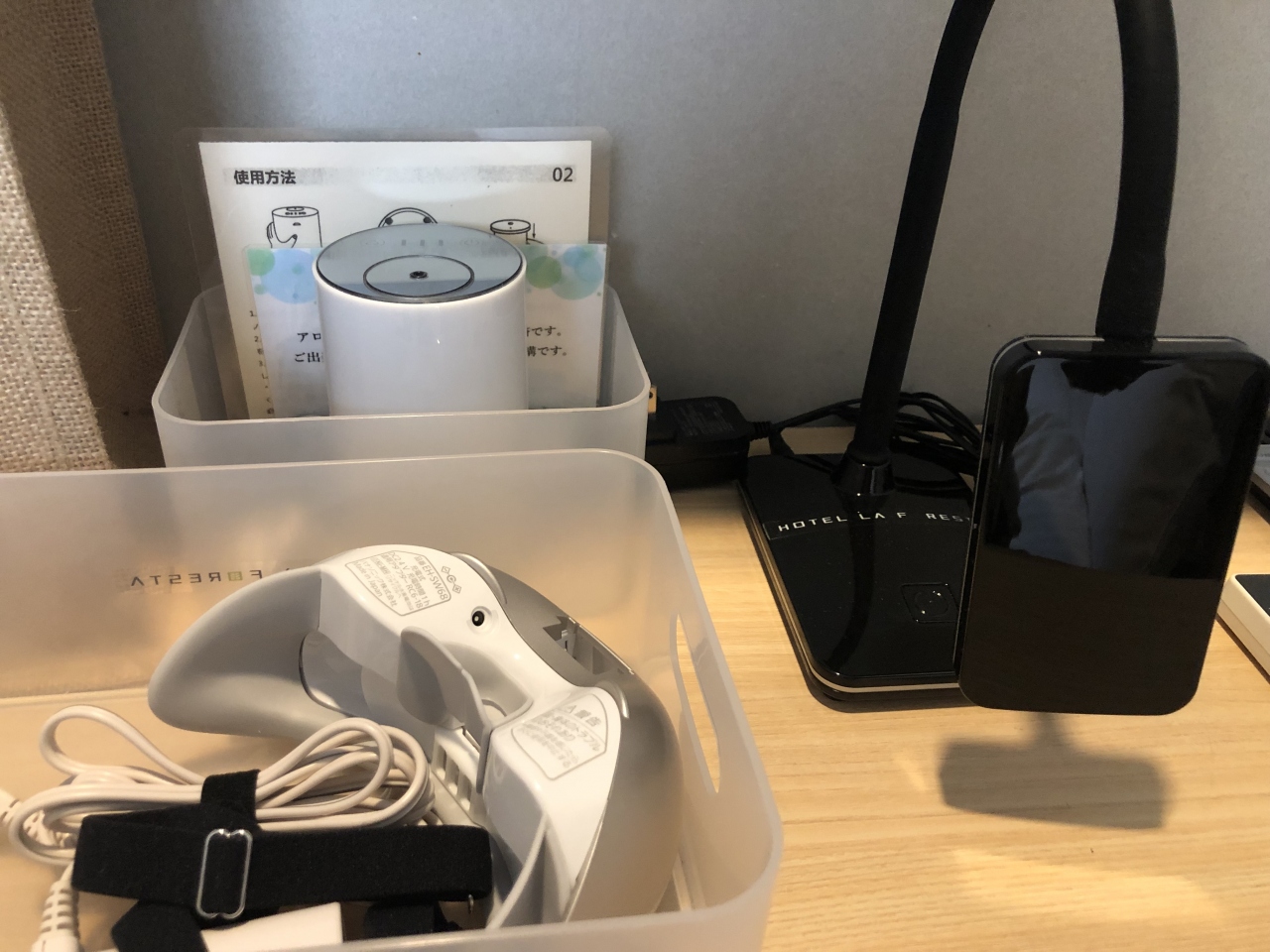 博多駅筑紫口から徒歩3分、2軒隣がコンビニと便利です。ワンルームマンションのような造りです。フロントで化粧水など必要なものは自分で持って行くシステム。枕も好みのものが選べます。。楽天で予約、バースデーで2020円でした。ミニプレゼントで入浴剤など頂きました。事前に電気スタンドとアロマデュフューザーを予約。「以前目元エステもご予約いただいておりましたので、ご用意いたしました」と、お部屋にご用意していただきました。各部屋に、加湿器付き空気清浄機、大型テレビ付き。