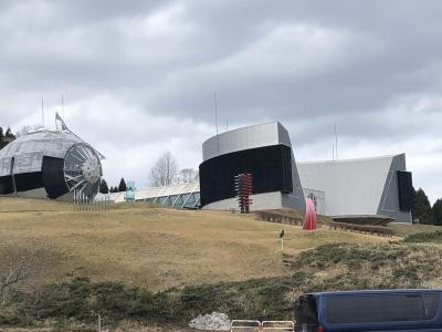 道の駅のとじまの道路向かいにある建物です。ツアーだったので、時間がなく、中へは入らず、建物だけ鑑賞しました。ガラス製の戦闘機のような部分が面白いです。ガラス工房は、道の駅の奥の方へ移転しているので、購入、体験することができます。