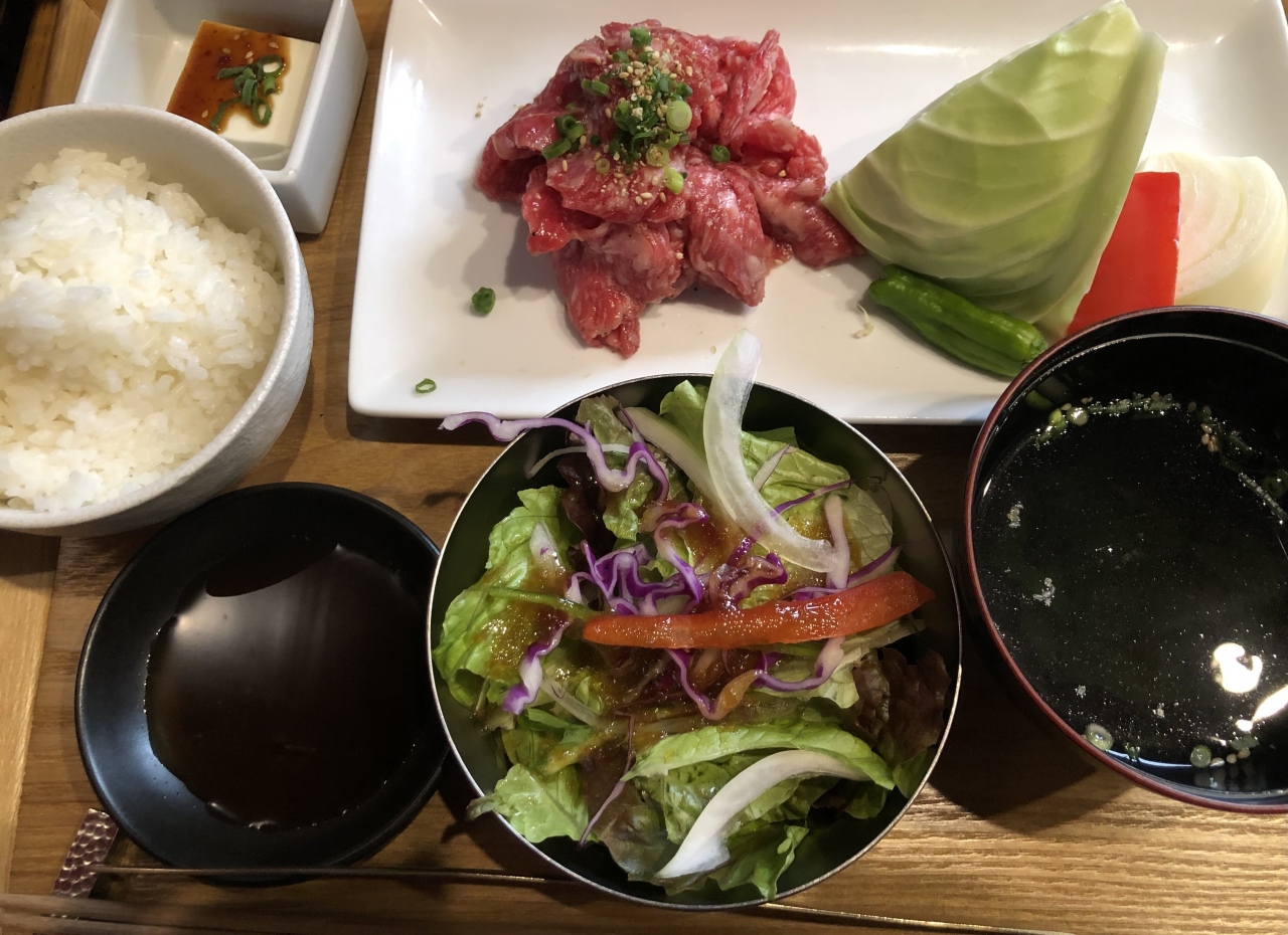 友達とホテルの近くに焼肉ランチしに行きました。個室ですが、掘りごたつ式ではなかったので、膝の悪い私は足を投げ出して座りました。お肉はさしが入っていましたが硬かったです。食後に杏仁豆腐とコーヒーがついて1100円。