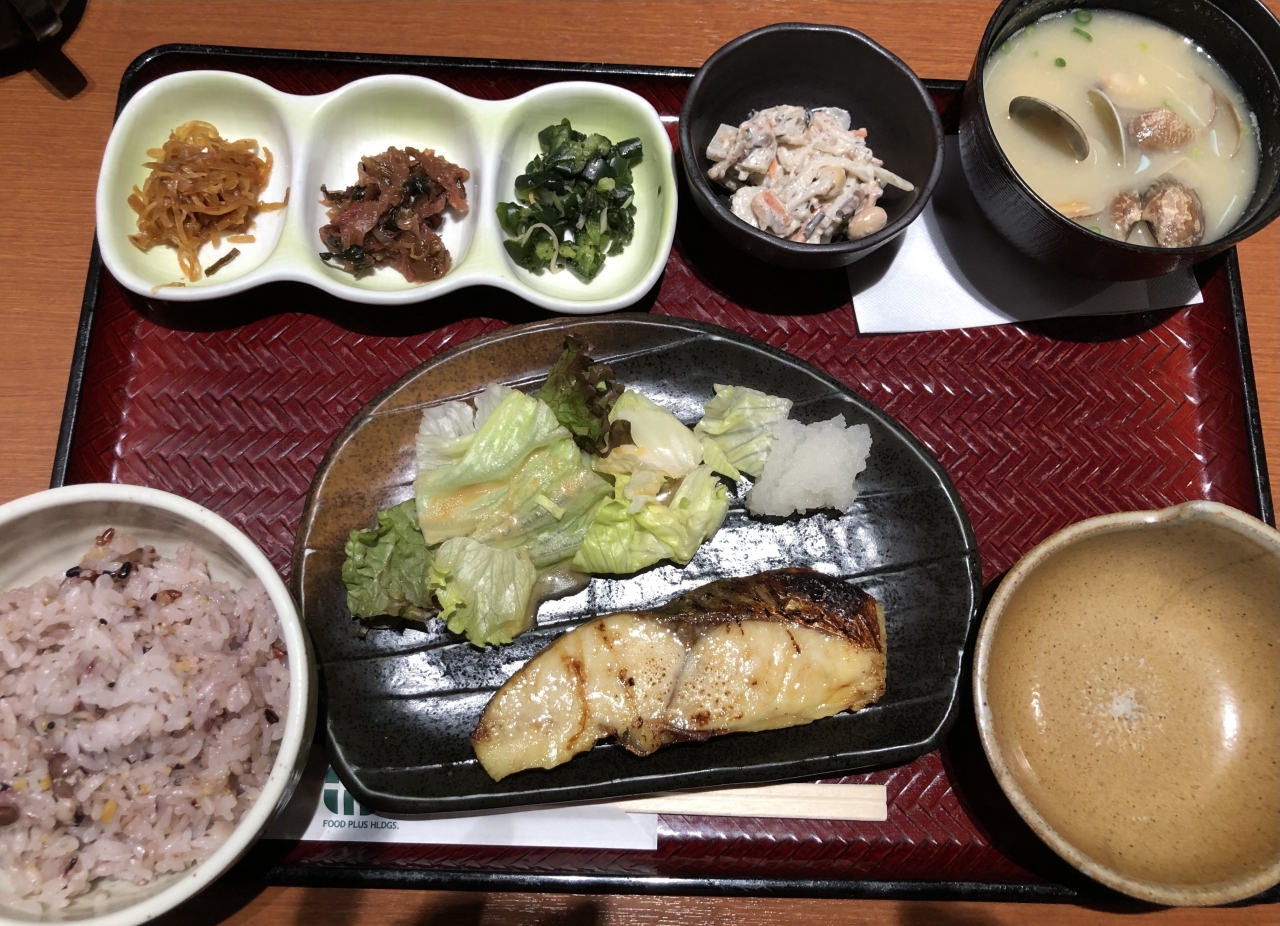 小倉駅直結の、小倉アミュ6階と、大変便利の良い立地で、待ち合わせに好都合です。従妹と待ち合わせて、ここで夕食を頂きました。いつものヒラスの西京焼きと貝汁、ご飯は雑穀米を選びました。そしてドリンクバーを付けました。栄養バランスの良い、美味しい食事ができました。