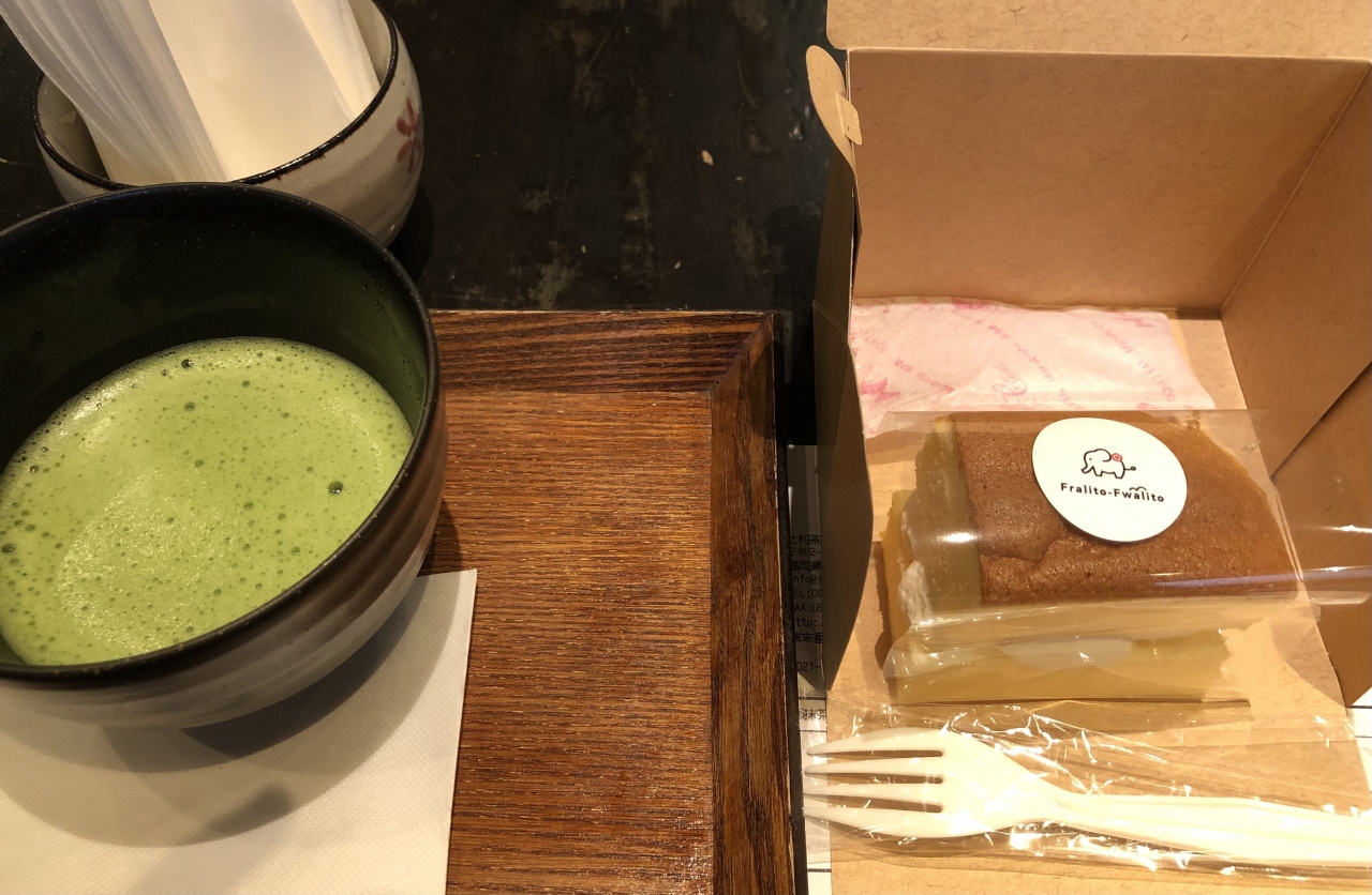 ここから徒歩20歩先の「Fralito-Fwalito」で台湾カステラを買い、そのレシートを持参すると、飲み物が100円引きになります。両方美味しくここで頂けます。先月は土曜だったので、カステラは売り切れ。黄な粉白玉とお抹茶を頂きました。白玉は温かく、両方とも美味しいです。