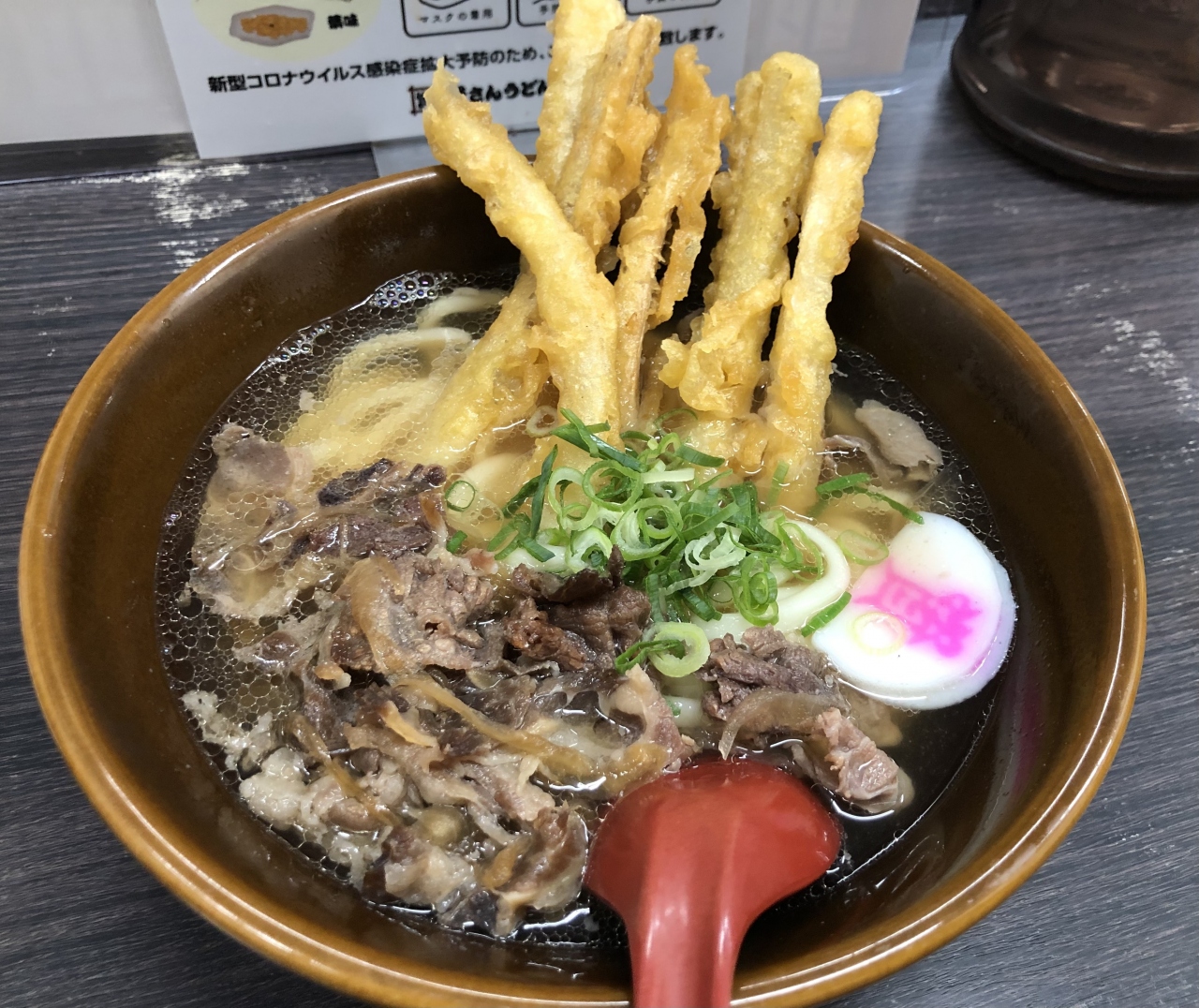 資さんうどんは北九州のソウルフードと呼ばれています。うどんの汁は、関東と違って澄んでいて、ちょっと甘め。麺は柔らかめです。おはぎと一緒に食べるという方も多いようです。ご時世もあり、お持ち帰りもできます。