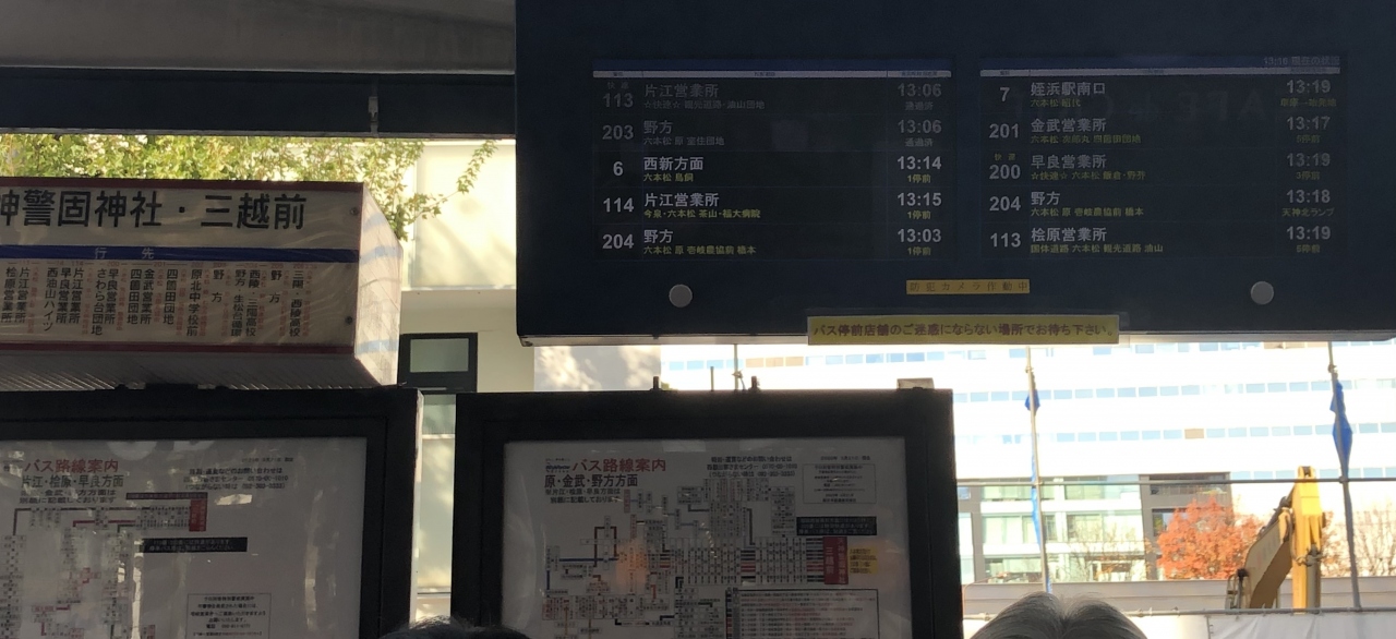 博多駅から天神まで150円と値上げはしましたが、庶民の足で、便利です。従姉の家の最寄りのバス停まで、50分ほど車窓見物しながら、福岡市内見物しながら行きましたが、片道380円と、良心的な値段だと思います。主なバス停には電光掲示板があり、いつ頃バスが来るかが分かり、便利です。