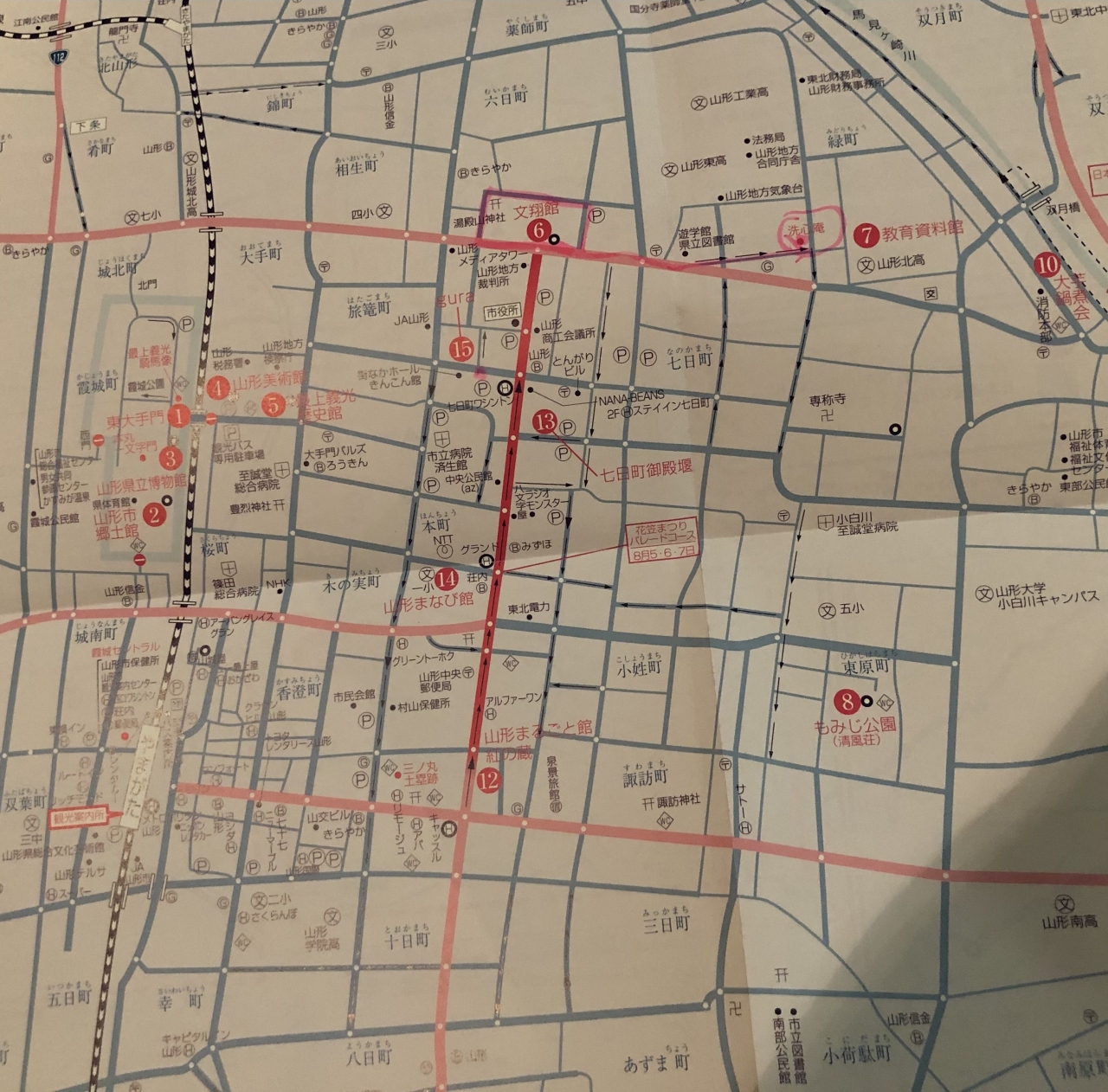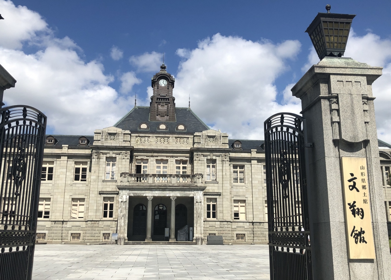 友達と訪問しました。1916年(大正5年)に完成した英国近世復興様式です。表は花崗岩、内側はレンガ造りで、大正レトロの雰囲気です。時計塔は稼働しており、全国で2番目に古いものです。山形の歴史、文化、文学の展示がされています。