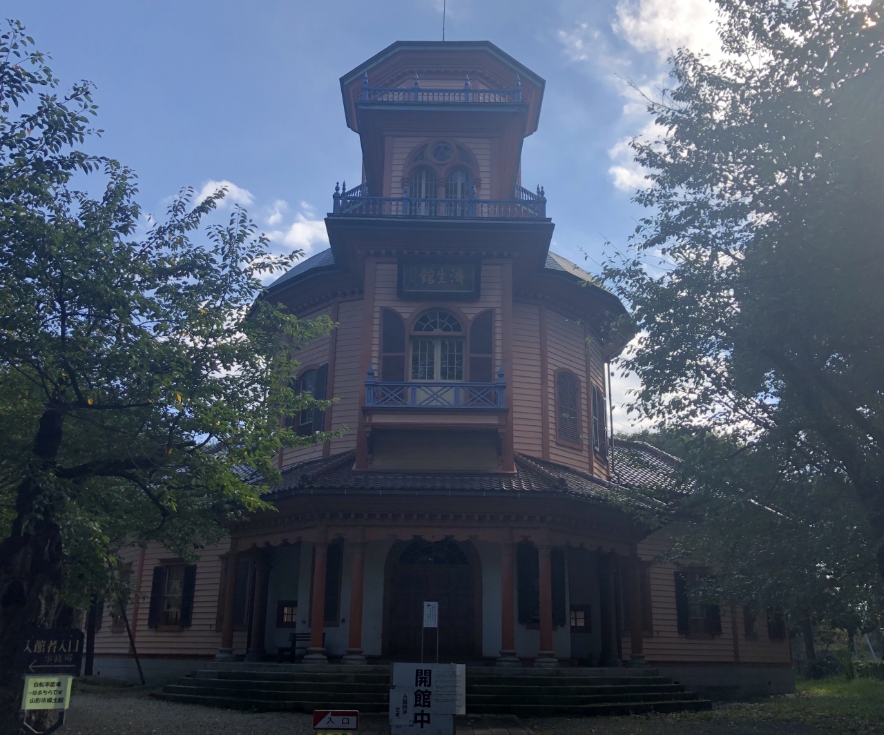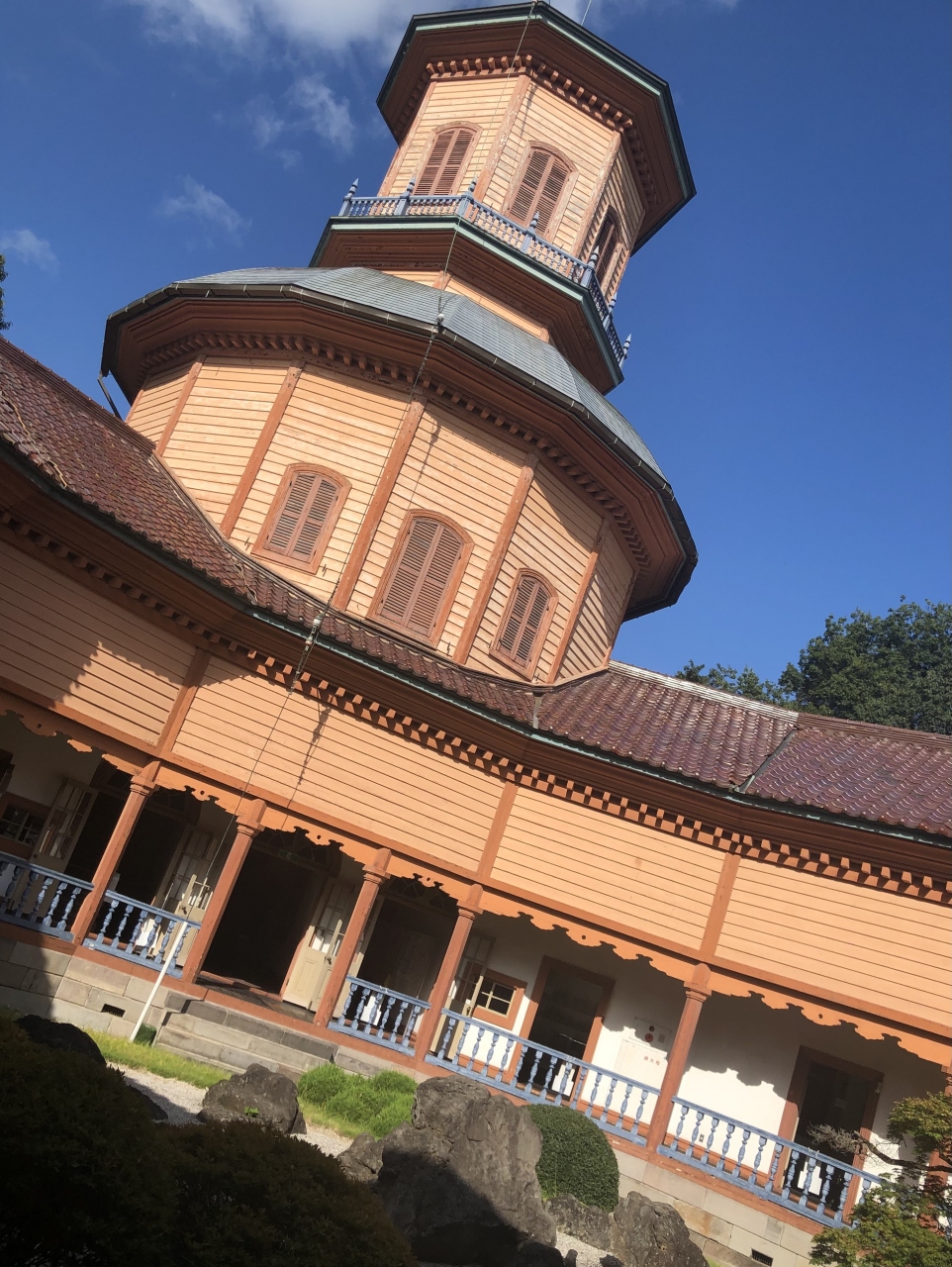 霞城公園の一角に建つ14角形の建物です。明治初期の擬時洋風建築の傑作と言われています。螺旋階段を上って、2階までは行けますが、その上は立ち入り禁止です。医学資料や、山形の郷土資料などが展示されています。入場無料です。