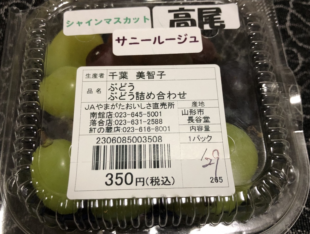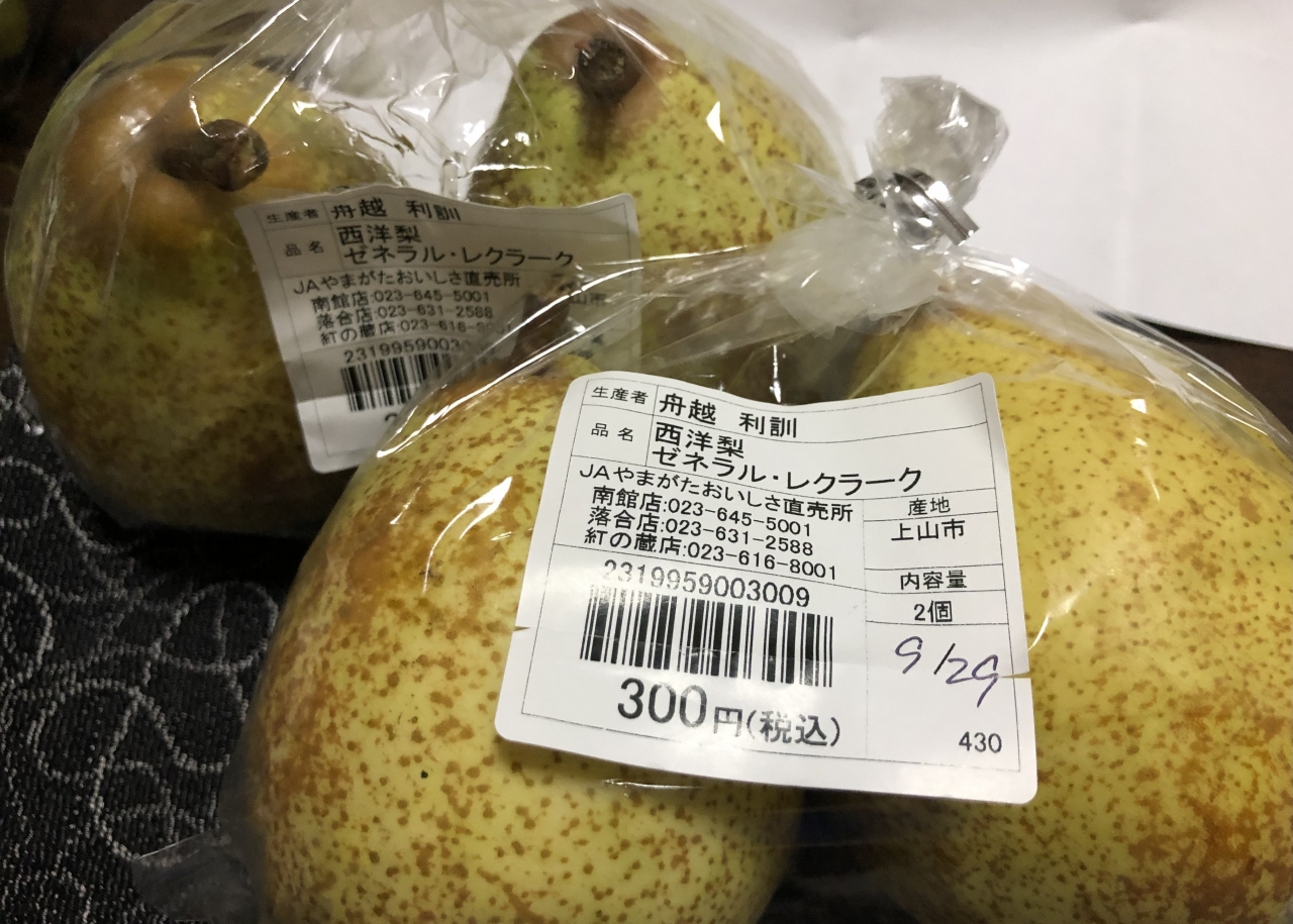 山形駅からベニちゃんバスで「紅の蔵」前下車、4分、100円。「まるごと館紅の蔵」の裏の駐車場にあります。JA直売所なので、野菜も果物も安く、地元の方たちが、買い物かご下げてきています。ブドウと出たての洋梨を買いました。前者は甘くて美味しかったです。