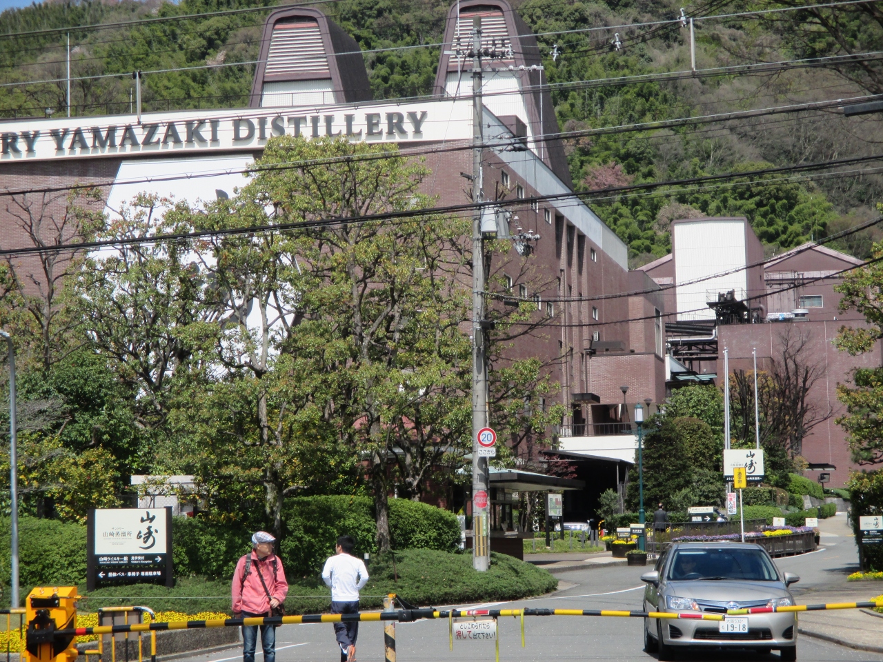 JRの山崎駅からゆっくり歩いて10分ほどという便利な場所に、サントリーが初めて手がけた国産ウイスキーの故郷、山崎蒸留所がありました。工場見学は事前の申し込みが必要ですが、売店や展示を見るのは、入口の受付で代表者の氏名等を記入するだけで大丈夫す。サントリーの創業者、鳥井信太郎や2代目佐治敬三の経歴などを紹介したパネルや、最初に出荷されたウイスキー「白札」の瓶や当時の新聞広告などサントリーのウイスキーづくりの歩みがわかり易く紹介されていました。2階の売店にはサントリーウイスキー山崎はもちろんサントリーが販売している各国のウイスキーやおつまみ、樽材を使ったコースターやペンなど中々充実した品揃えでした。
