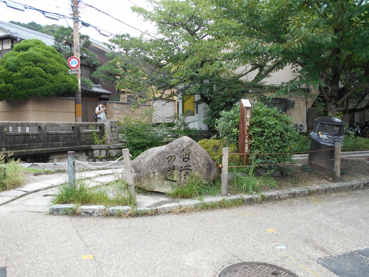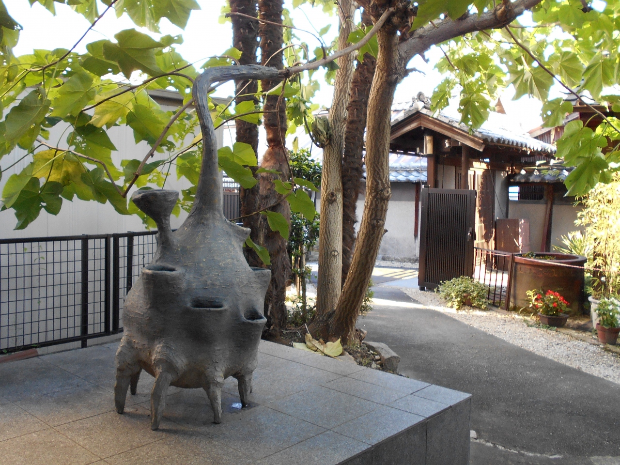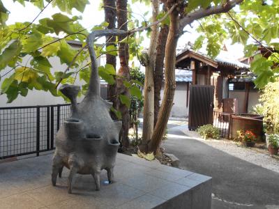 町の中にひっそりと祀られているが、高名な陰陽師安倍晴明を祀る神社だけあり、若い人の姿も目立つ。境内はそれほど広くはないが、神通力でわいたという清明井や、安倍清明の伝説を紹介したパネル展示、清明グッズの店などもあり、すっかり観光地化が進んでいる。修学旅行生もお参りをして熱心にお土産を買っていた。この清明神社の西側のエリアが西陣のまちでさすがに織物関係の家や西陣織会館などが点在していた。
