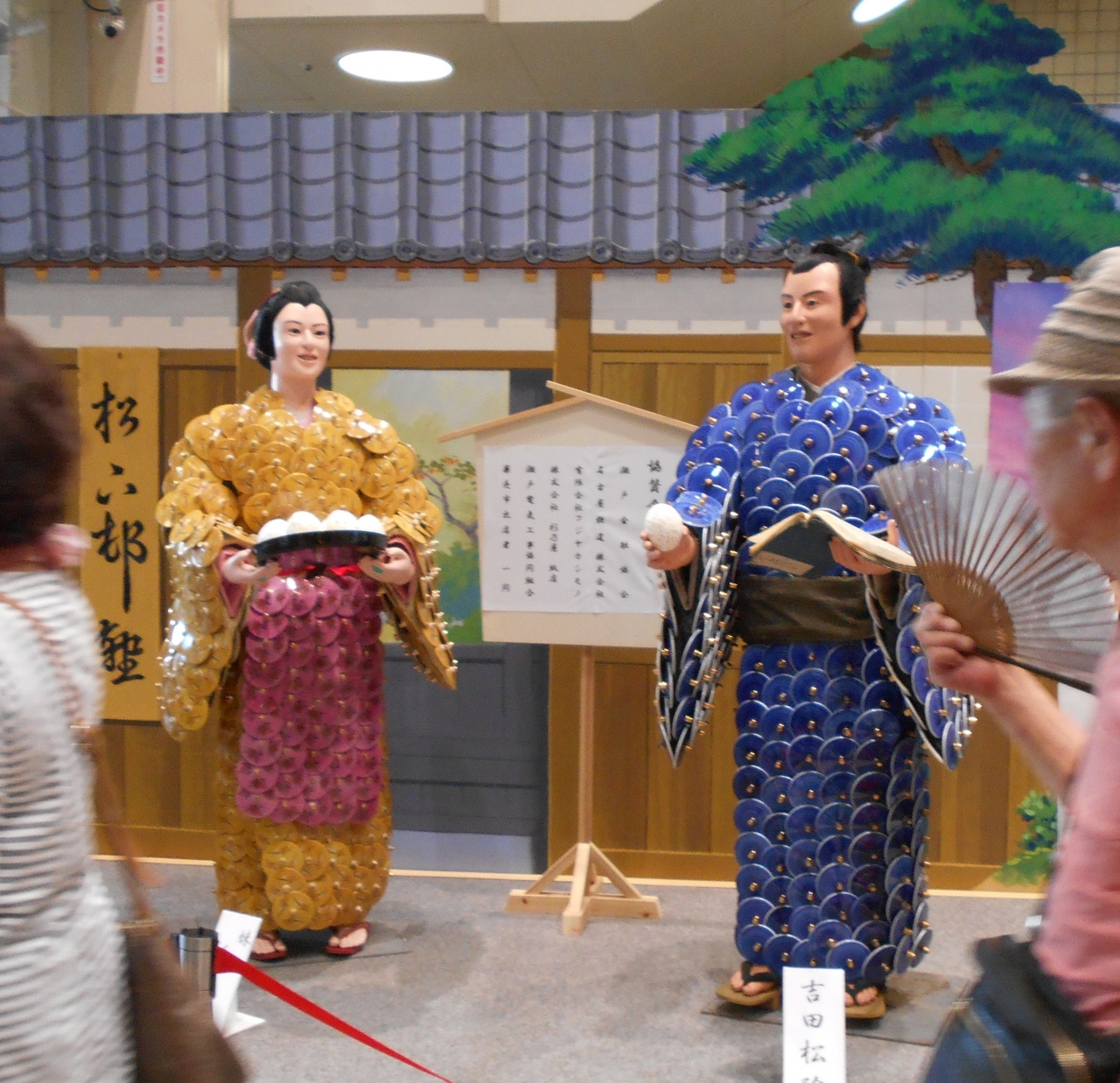 久しぶりに瀬戸物祭りに行ってみた。瀬戸側沿いに歩いていくと、瀬戸物を売るテントがたくさん並んでいた。瀬戸物の町らしく、瀬戸川にかかる橋も焼き物出来ていたりして楽しい。今回は、多肉植物を植え込む鉢を探していたが、それ以外にも店を覗いているうちに、皿や保存容器など次々買ってしまい、荷物が多くなったところで帰ることに。帰りは銀座通り商店街へ。こちらにも沢山のお店が出ていた。せと焼きそばなどのグルメの屋台も多数並ぶ。夜には花火大会も行われるようで、浴衣姿の若者も見られた。