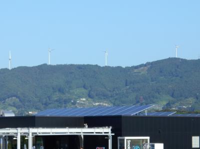 建物にはソーラーパネルは備えられ、近くの山上には風力発電の風車が並ぶ。環境にも優しいSA。- 旅行時期