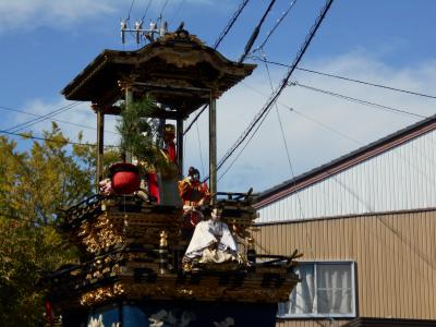 今回は秋祭りの市神祭りの1日めで近くの成信坊で6台の山車によるからくり奉納などが行われた。山車を大きく傾けて回転する様はなかなかの迫力。