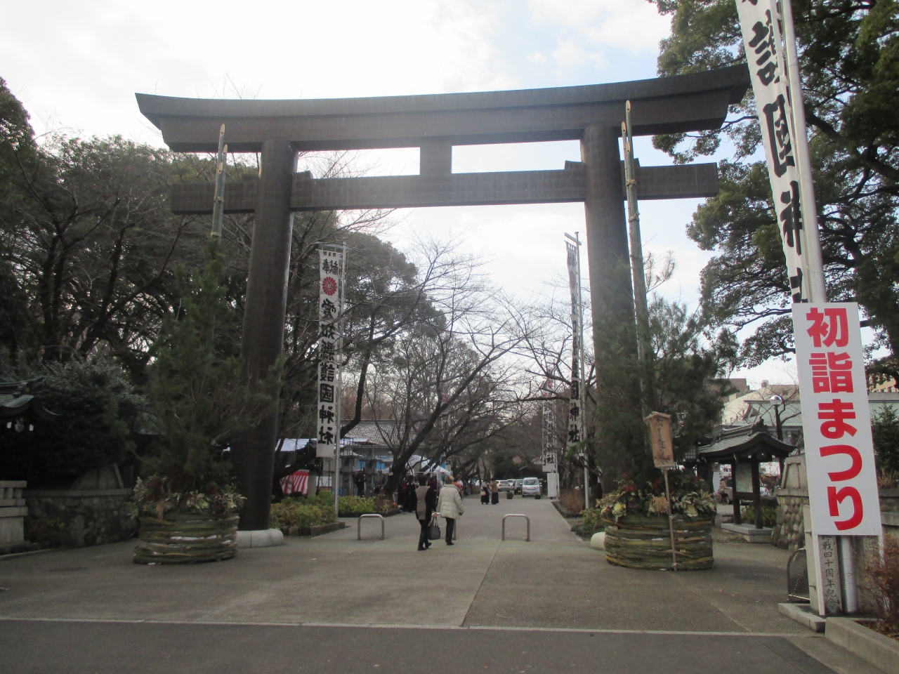 名古屋城の近くの官庁街の中にこんなに広々とした神社があるとは知らなかった。町の中心にありながら駐車場もあり、周辺道路は休日なら少し車を停めておくこともできる。初詣に行ったら、大きな鳥居の前にこれまた大きな門松が飾られていた。