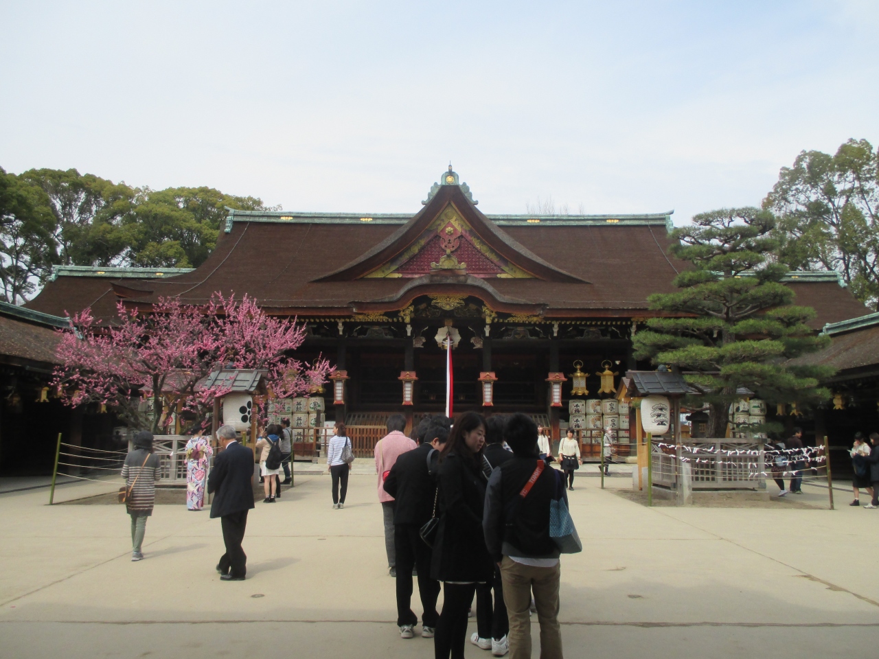 学問の神様菅原道真を祀る神社。京都の北部、金閣寺や龍安寺の近くにあり、修学旅行生や観光客に人気のスポットです。一番賑わうのは受験生がお参りくる冬から梅が咲き誇る早春の時期。今年は梅の開花が遅れていたので、3月の半ばでも梅の花を楽しむことができました。なでると頭が良くなるという撫で牛があちこちに祀られており、子供のためせっせとなでたきましたが、本人でないと効果はなさそうです。近くに上七軒の風情ある街並みや、京都最古の寺院建築である大報恩寺などもありゆっくりと歩きたいエリアです。