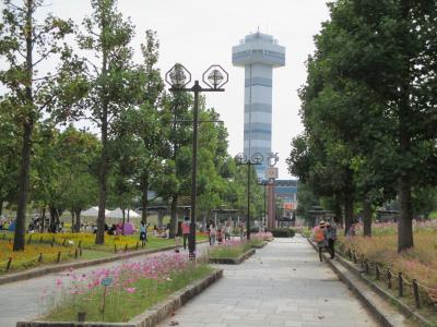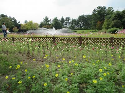 国営木曽三川公園は木曽、長良、揖斐の木曽三川に沿って何箇所もある広大な公園で、中でもこの木曽三川センターが一番はじめに作られた公園で広い芝生広場と花壇、治水タワーがメインの施設。きゅうじつともなると家族連れが大勢集まる人気の公園だが、一番賑わうのは春のチューリップ祭りの頃。近くのなばなの里にスケールではやや負けるが、広い花壇に咲く色とりどりのチューリップを入場無料で楽しめるとあり大変な人出。周辺道路の渋滞が難点だが、これ以外の季節では河川敷に広い駐車場が作られているのでそれ程渋滞することはない。今の季節はコスモスが楽しめる。