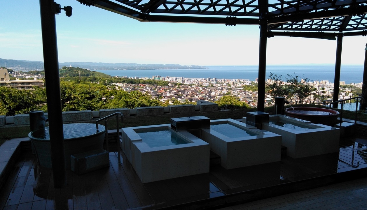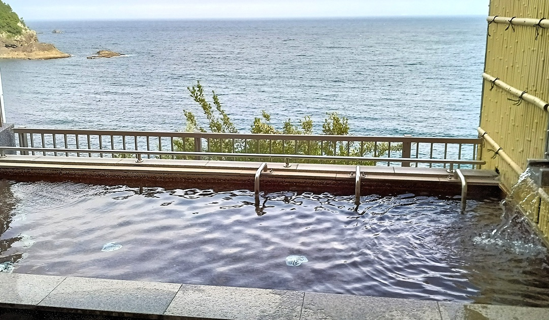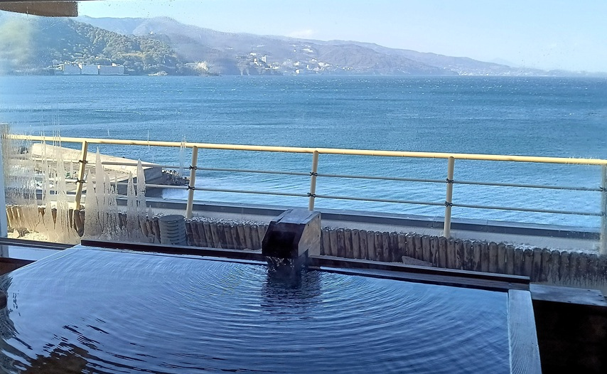 大浴場は一階で景色は無いものの、特筆は上層階にある予約不要の貸切露天風呂でとにかく海の眺めが抜群で印象深かった。 貸し切りなので自由に写真も撮れる。