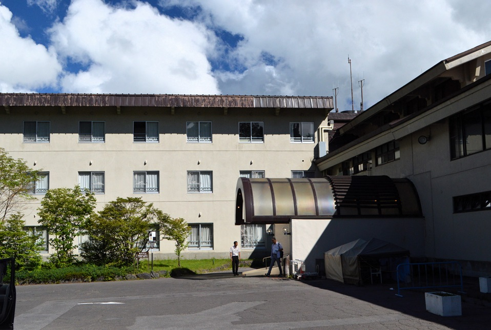 中禅寺湖畔の森の中に佇む懐古調のホテル。