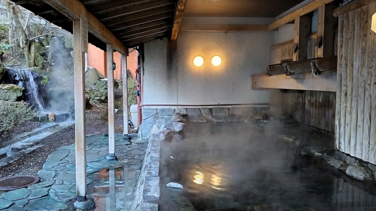 温泉はナトリウム/カルシウム/塩化物泉/無色で敷地内湧出の源泉かけ流しで浴感も良い。
