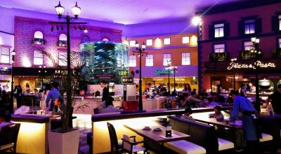 域内にホテルが3棟(+1棟建設中)分散して他にも様々な施設がある。