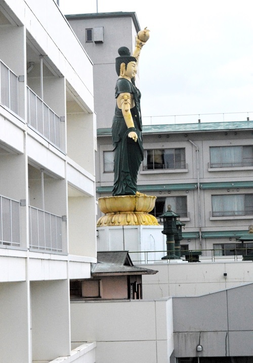 創業者がりんご業者で正面玄関屋根上のリンゴ観音にまず驚かされた。