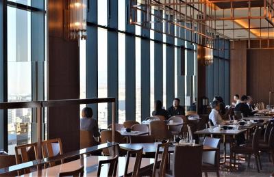 レストランは眺めのよい最上階にあり夜はバーになるので気分転換に便利である。