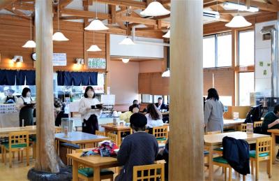 広い食事処のほかテイクアウトのカフェもあり飲食には十分。