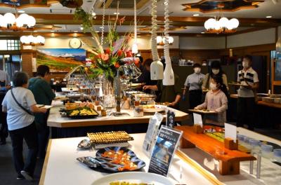 食事は2ヵ所あるバイキング会場からコース料理のメインダイニングまで予算で選択だが今回はバイキング限定。