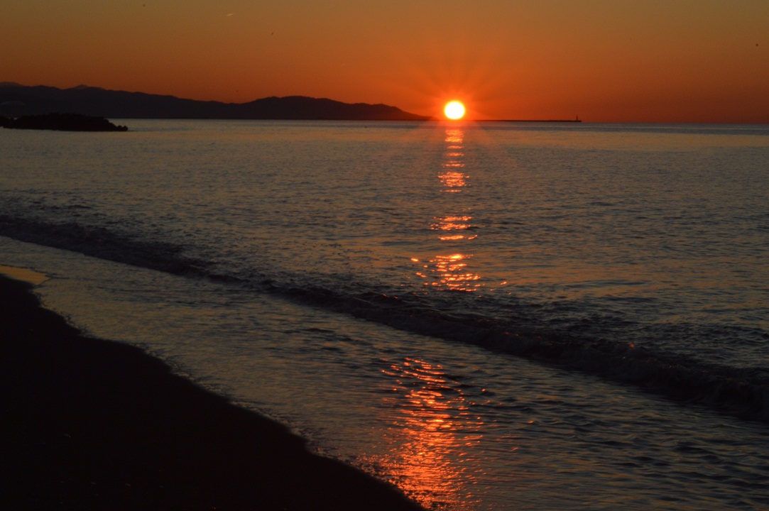 徒歩わずかのところで日本海の感動的な夕日を拝めたのはラッキーそのもの。