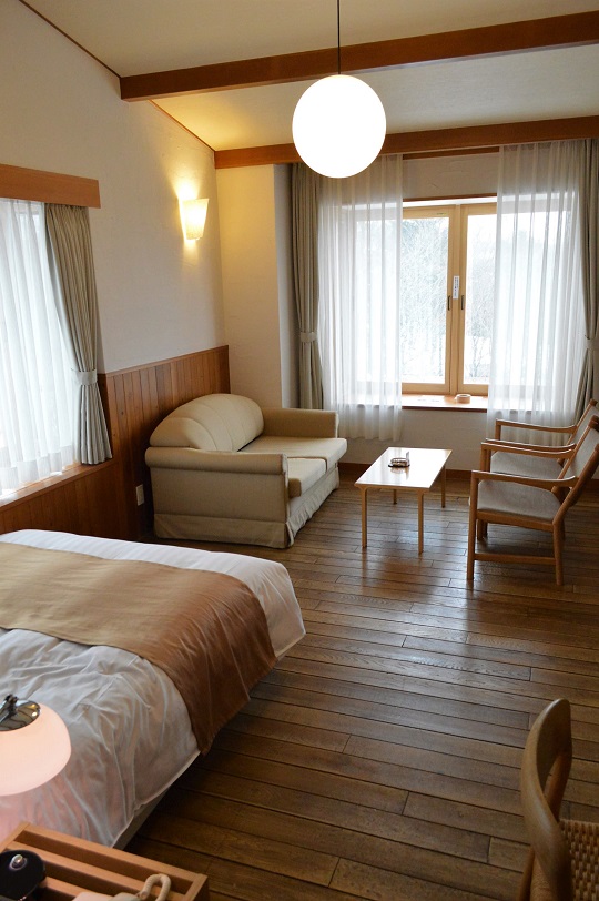 ダブルベッドの広い部屋は靴を脱ぐ木の床で床暖房のおかげで快適だった。