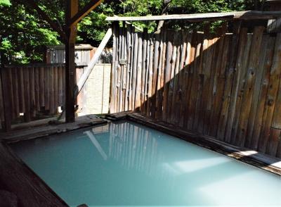 露天風呂は木造で雰囲気は良いが囲いが多くて解放感にやや欠ける。
