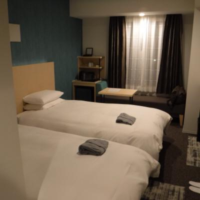 たまたま検索した時期が安かったので、予約したのですが、仲間内でも、ここのホテルが最高と話題になっていて、本当にいいです。場所も、狸小路と大通公園の間で、どちらにも徒歩3分で行けます。ドリップ式コーヒーが部屋にあって、毎日4杯飲める。お風呂のお湯の勢いがすごくて、湯船に5分でお湯が溜まる。タオル類がいい。バスタオル気持ちいい。部屋のサイドの棚が使い勝手がよく、物を置きやすい。さすが、新築のホテルという感じで、いいところがいっぱいです。また、泊まりたいです。