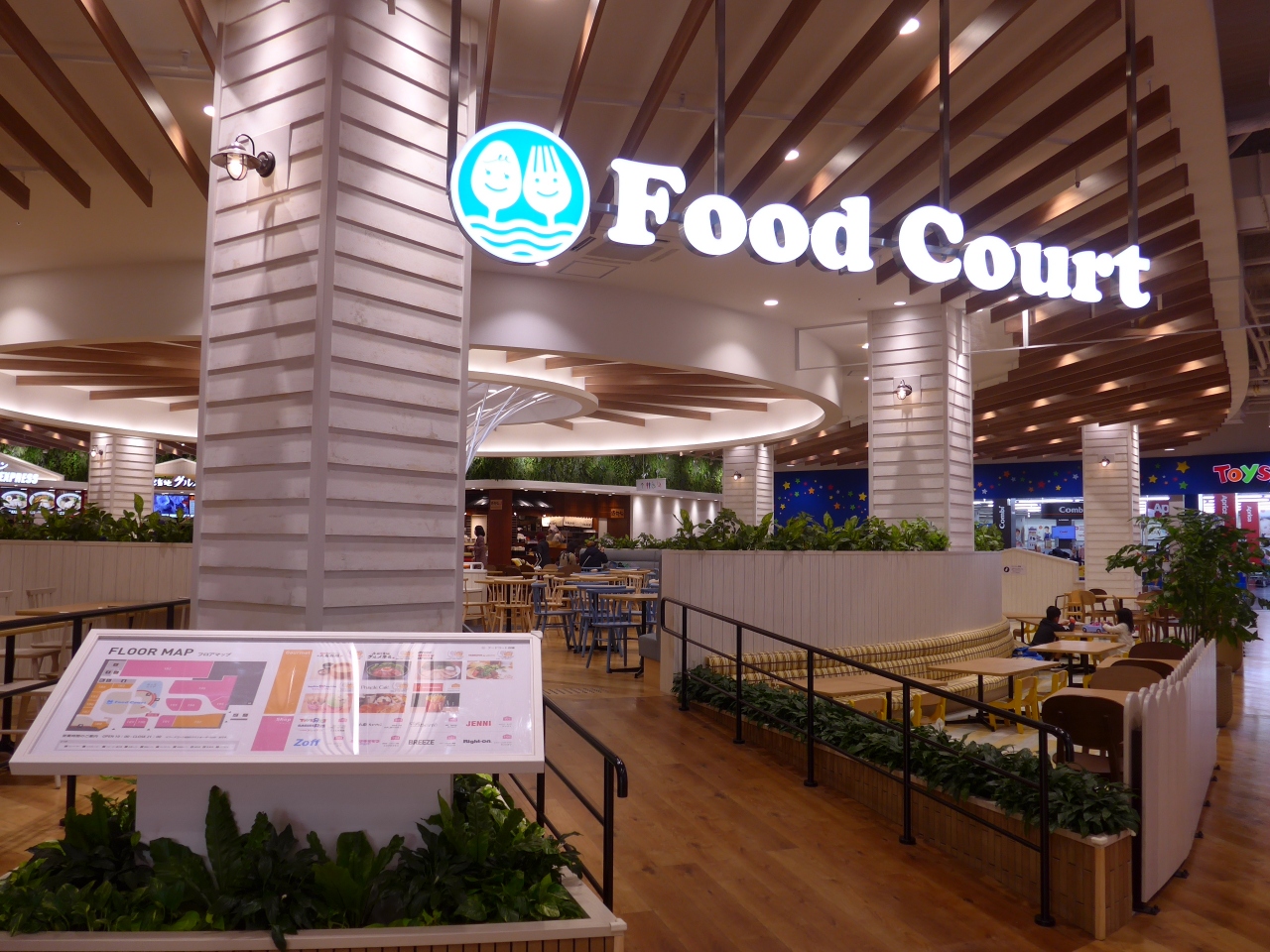 買い物を終えて新しく出来たフードコートを訪れました。広々として様変わりしていました。料理の種類が違う沢山のテナントが出店し広々としたフードコートには沢山のテーブル席が設置され訪れるお客を待ち受けていました。
