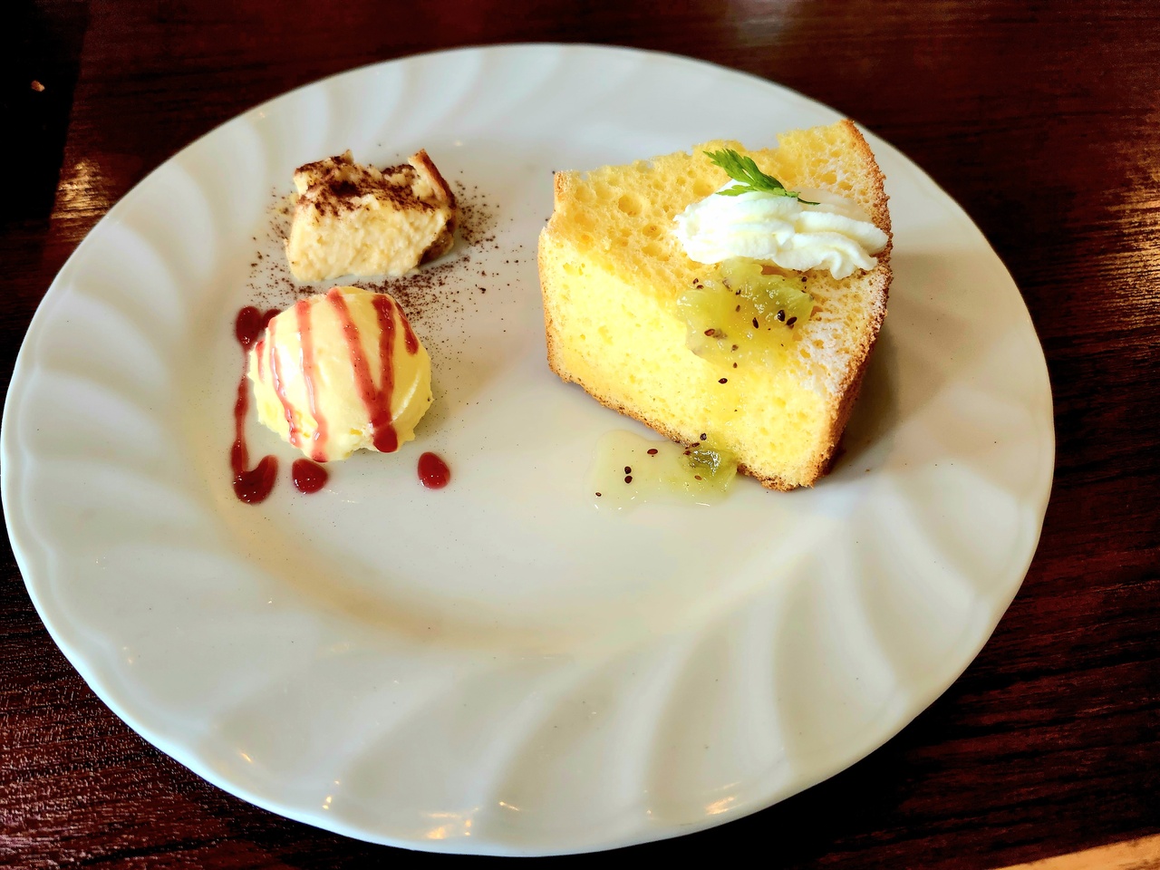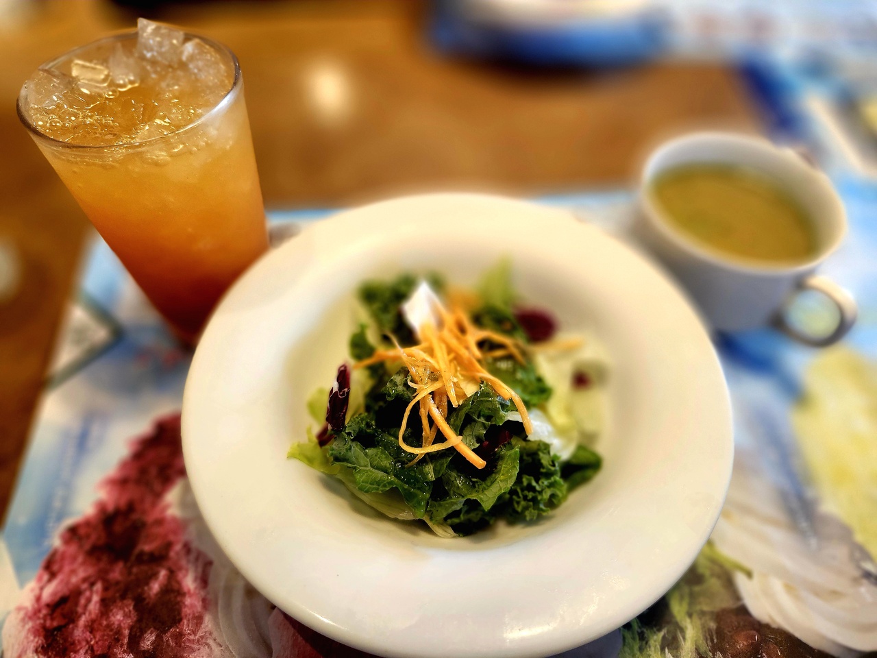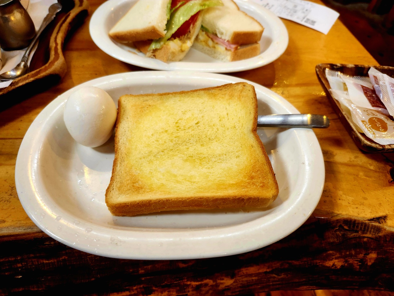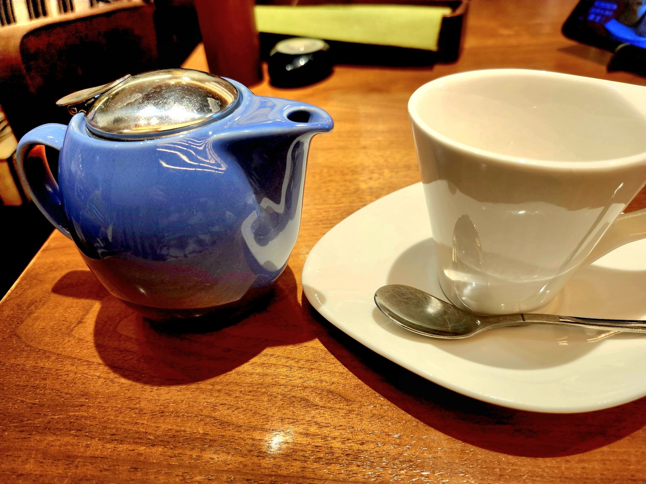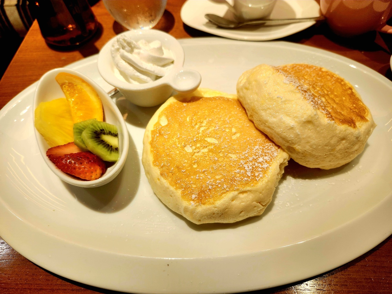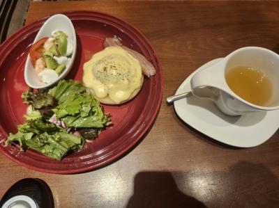 モーニングを友人と楽しんで来ました!友人はエッグベネディクト&海老アボカドミニサラダ&コーンスープ・私はフルーツMIXパンケーキ&ミニサラダ・2人でダージリンをオーダ-しました。ふわふわパンケーキが絶品でした!
