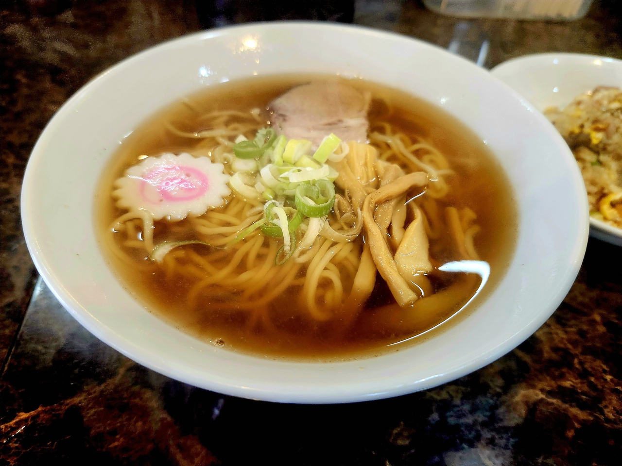 しょう油ラーメンorしおラーメンと半チャーハン(量多し)がセットになっている平日限定ひがしセット850円がお得です。しょう油ラーメンをチョイスしましたが煮干し系の美味しいラーメンでした。昔懐かしい感じの半チャーハンは食べきれずテイクアウトにして夕飯にいただきました。