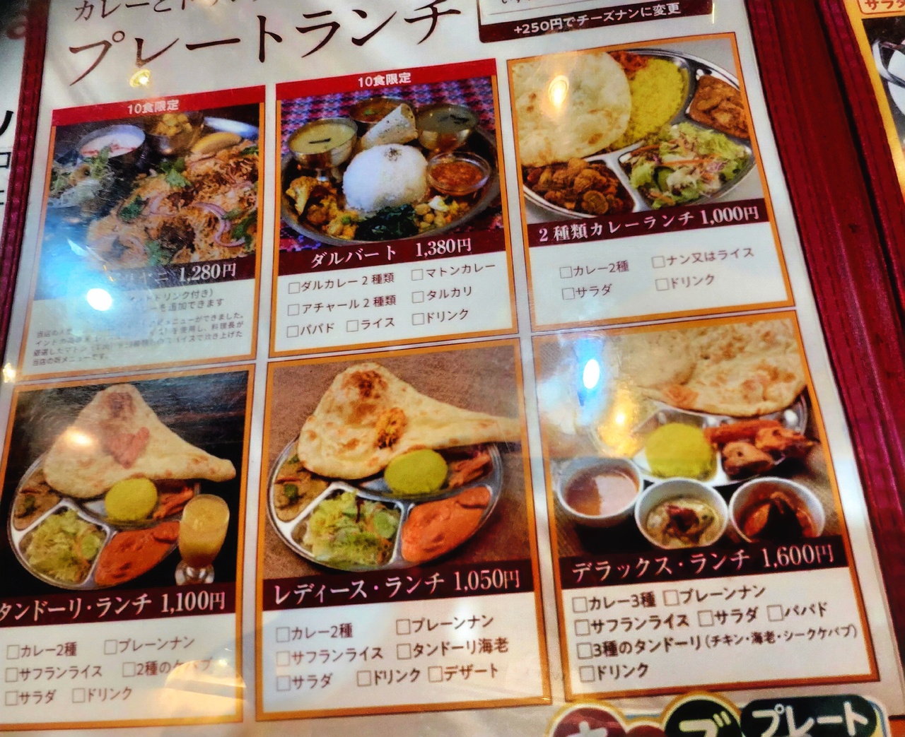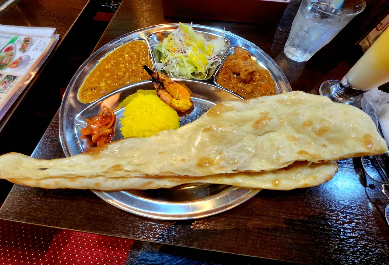 前から気になっていながら敷居が高かった(鶏肉アレルギーなので)友人がカレーが美味しいと語るレストランです。やはりメニューを見ると殆どがチキンの入ったカレーでした。プレートランチ(カレー2種・プレーンナン・サフランライス・タンドリー海老・サラダ・ドリンク・デザート)ですが選べるカレーでチキン以外はベジタブルカレーのみでした。思い切って鶏肉アレルギーだと告げると嬉しい事にランチメニュー以外の豆カレーで対応していただきました。焼きたてのナンがめちゃくちゃ美味しく2種のカレーも絶品でした!