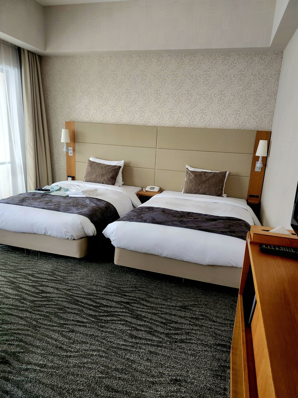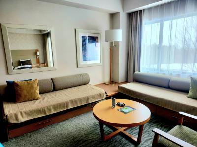 スーペリアツインの部屋に宿泊しました。ベッドの向かい側にあるソファーベットになるロングサイズのソファーが2つありました。ゆったりと過ごせる38㎡の広さです。温泉は露天風呂と内湯があります。食事も美味しかったです。
