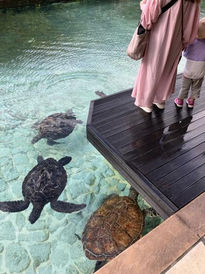 宮古島のホテルの中でも、少しリッチなラグジュアリーリゾートホテル。とは言っても閑散期はめちゃくちゃお得に泊まれます。3歳の子供のお目当ては亀のエサやりをすること!ホテルの池で飼育されている亀に毎朝エサがあげられます。