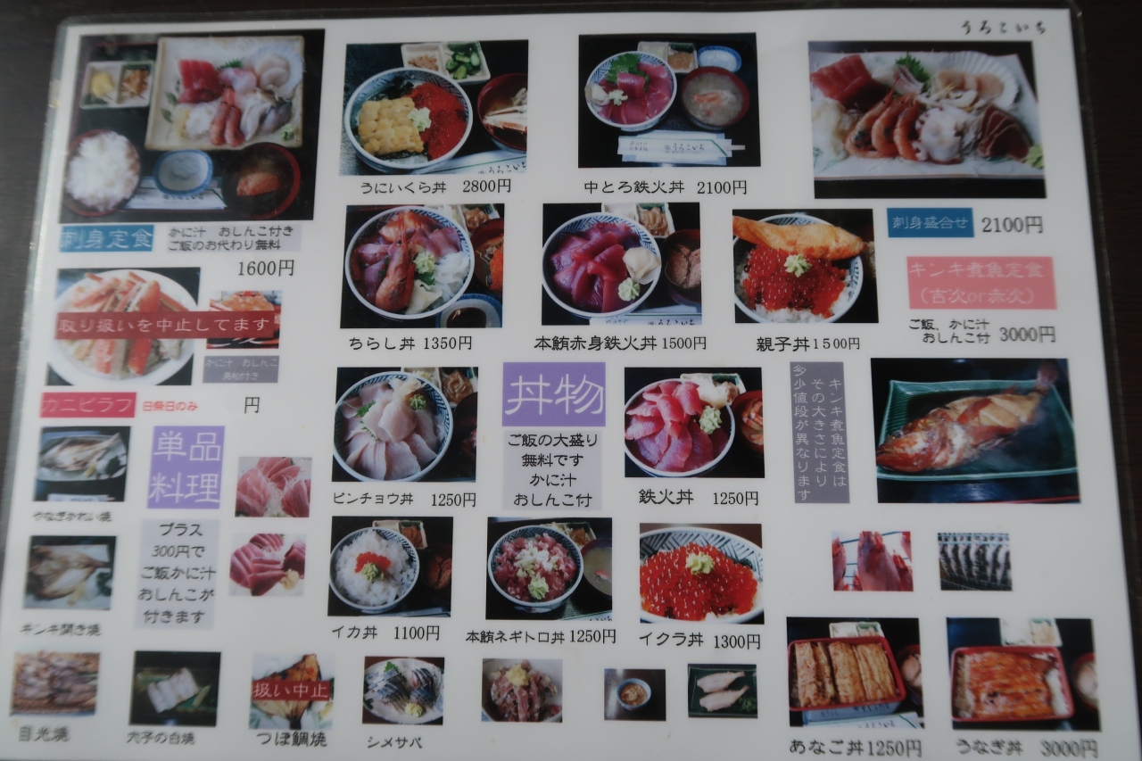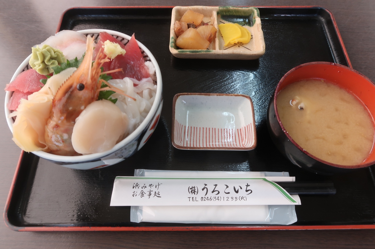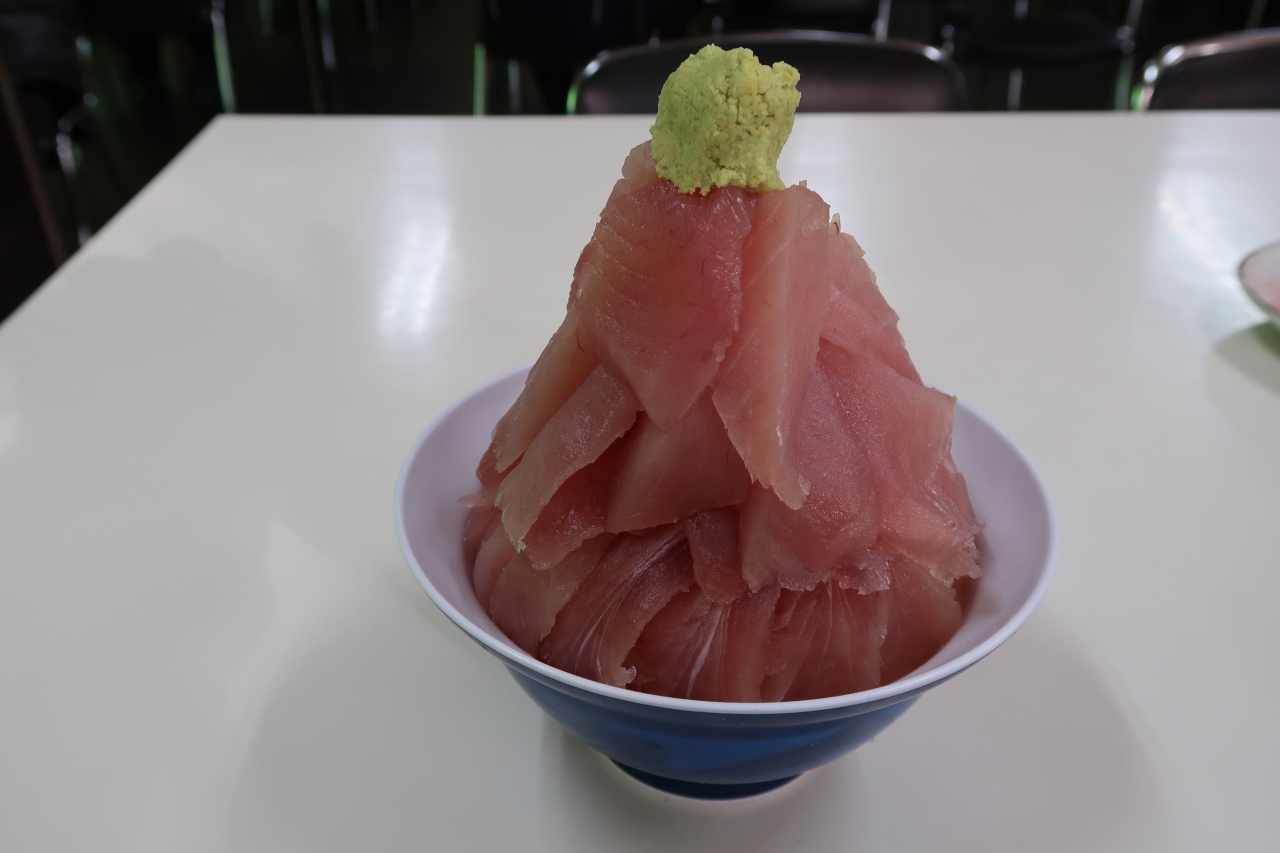 浅虫温泉駅から徒歩5分、国道4号沿いにあります。ウニ・ホタテ・マグロなど魅力的な海の幸を海鮮丼や定食でいただける人気店で、時期により大間のマグロや三陸塩竈ひがしものも楽しめます。中でも紀州勝浦産の生びんちょうまぐろを使ったマグロ丼はテレビで紹介されるほどの名物メニュー。ミニ・小・中・と3サイズから選べるので「中」を選択。(3,850円)つい笑ってしまうほど豪快なマグロタワーです。味はもちろん、忘れられない思い出ができました!