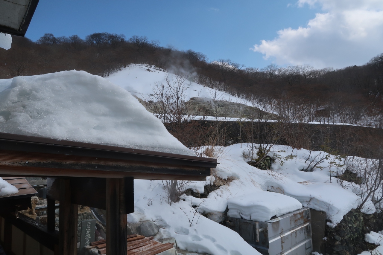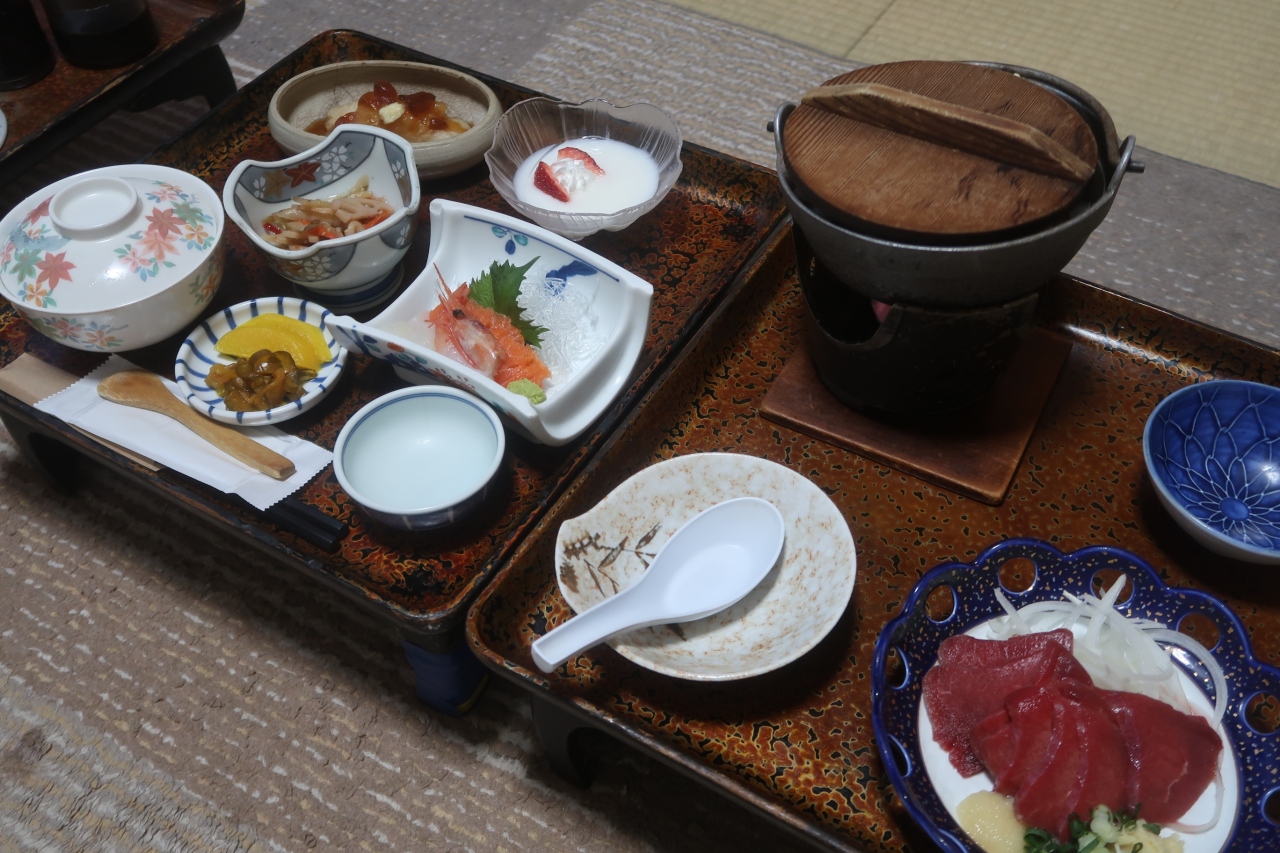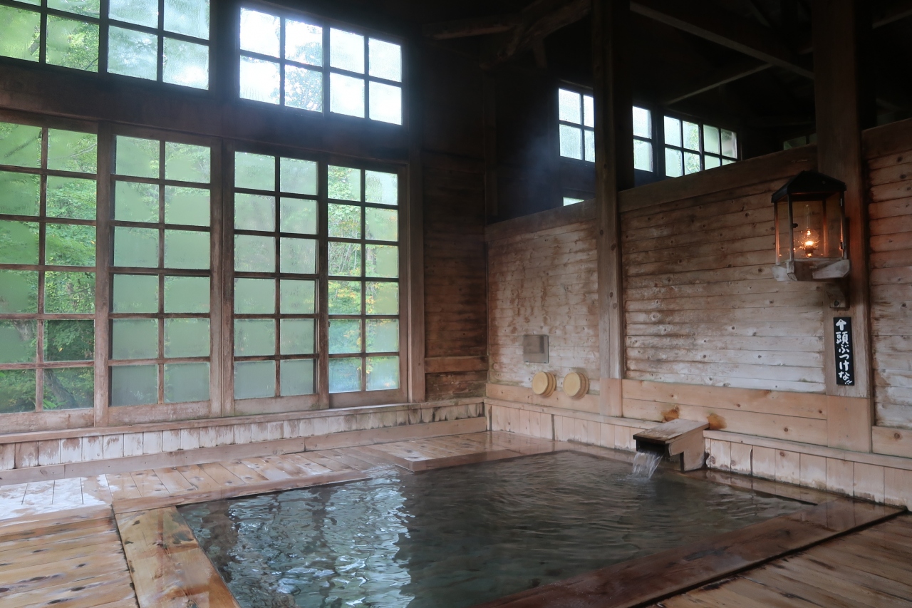 塩原温泉郷の標高950mの山あいに佇む奥塩原新湯温泉の宿です。塩原温泉バスターミナルから宿の送迎があるのでお願いしました。トイレ・洗面所は共用。屋号に湯荘と付くように湯(温泉)が自慢の宿で強酸性の硫黄泉は殺菌力があるのが特徴。裏手の硫黄山(爆裂火口跡)からは噴煙が上がっていて周辺は硫黄の臭いが立ち込め温泉地の風情が漂ってます。部屋食で乳白色の硫黄泉は夜中でも入浴できて、12時チェックイン/10時チェックアウトと最大22時間の滞在が可能なのも嬉しいポイント。宿泊客は温泉街の3つある共同浴場を無料で利用できます。(冬季は2つ)夕食は近所の農家で採れた野菜や山菜、きのこなどを使った和食膳。別注料理の鹿刺し(ハーフ/1,000円)はクセがなく美味しかったなぁ。