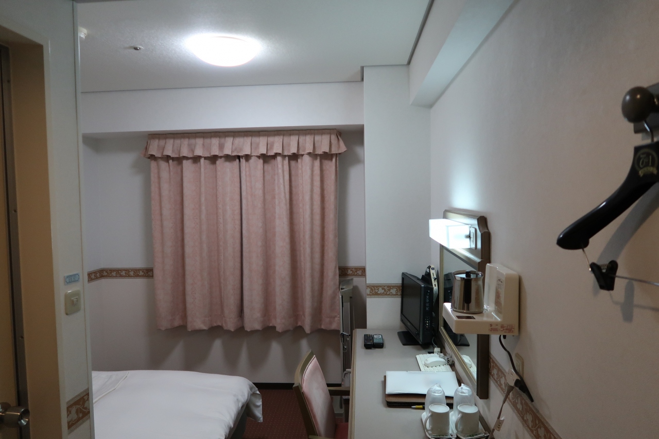 比較的お安く泊まれるビジネスホテルチェーンです。長岡駅大手口から徒歩3分、食事や買い出しするにも便利な立地です。宿泊した客室はシングル12平米。ベッドが横向きなのでスペースに余裕があるレイアウトになってます。朝食バイキングは地元食材を使った料理などメニュー豊富で美味しかったですよ。