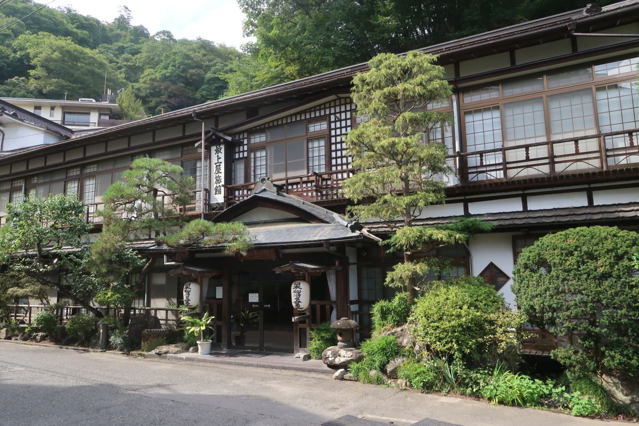江戸時代後期創業の老舗で木造建築ならではの趣のある純和風旅館です。トイレ付の客室もありますがトイレ無しの一人旅プランを利用。館内はどこも清掃が行き届いていて清潔感があります。鉄分を多く含んだぬる湯の温泉は男女入れ替え制で24時間入浴可能。地のものにこだわった食事を美味しくいただき、のんびりと茶色い濁り湯に浸かってリフレッシュできました。