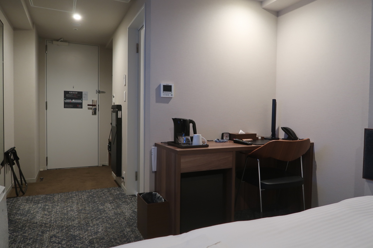 東京メトロ東西線の南砂町駅から徒歩5分、マンションが建ち並ぶ静かな住宅街に位置しています。思っていたよりも綺麗で大きなホテルだなぁというのが第一印象。宿泊したダブルの客室(16平米)は清潔感があって使い勝手がよく、140cm幅のワイドベッドで快適に過ごせました。ロビーにはアメニティバーとウェルカムコーヒー、各フロアに製氷機・自販機があるのも便利でした。周辺にスーパー・大型ショッピングセンターもあり、駅前から都営バスで錦糸町・亀戸方面にも出れますよ。