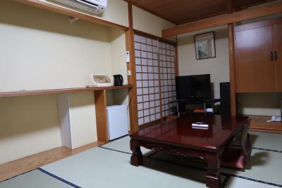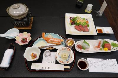 湯本駅から徒歩7分、温泉神社手前の鶴の足湯広場を曲がった先です。蟹など海鮮料理が楽しめるプランの中から「あんこう鍋プラン」を予約。併設の料理店であん肝たっぷりで濃厚なあんこう鍋を堪能してきました。客室は細長いタイプの和室9畳・バストイレ付。窓を開けると隣のビルの壁で眺望はありませんが逆に静かに過ごせます。源泉掛け流しの温泉は24時間入浴可能なのも嬉しいポイント。従来のフルサービスをやめ気軽に何度も利用できる宿にシフトしたそうで、建物の古さを感じますが綺麗な客室でのんびり過ごすことができました。
